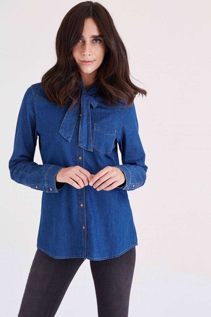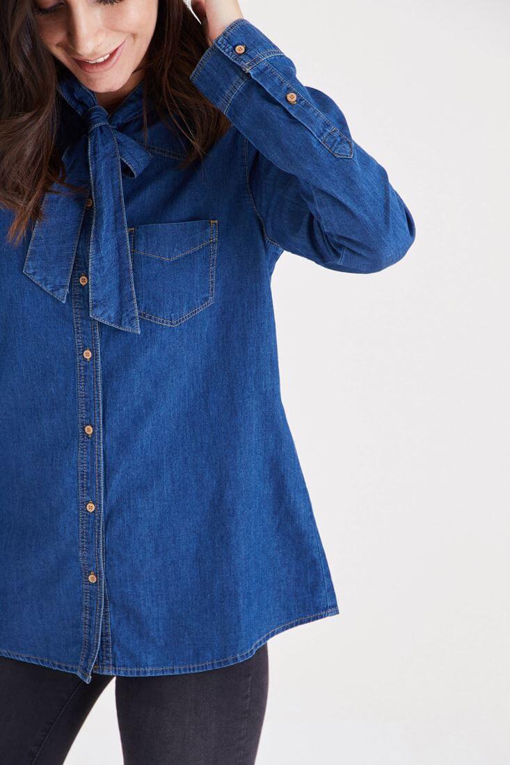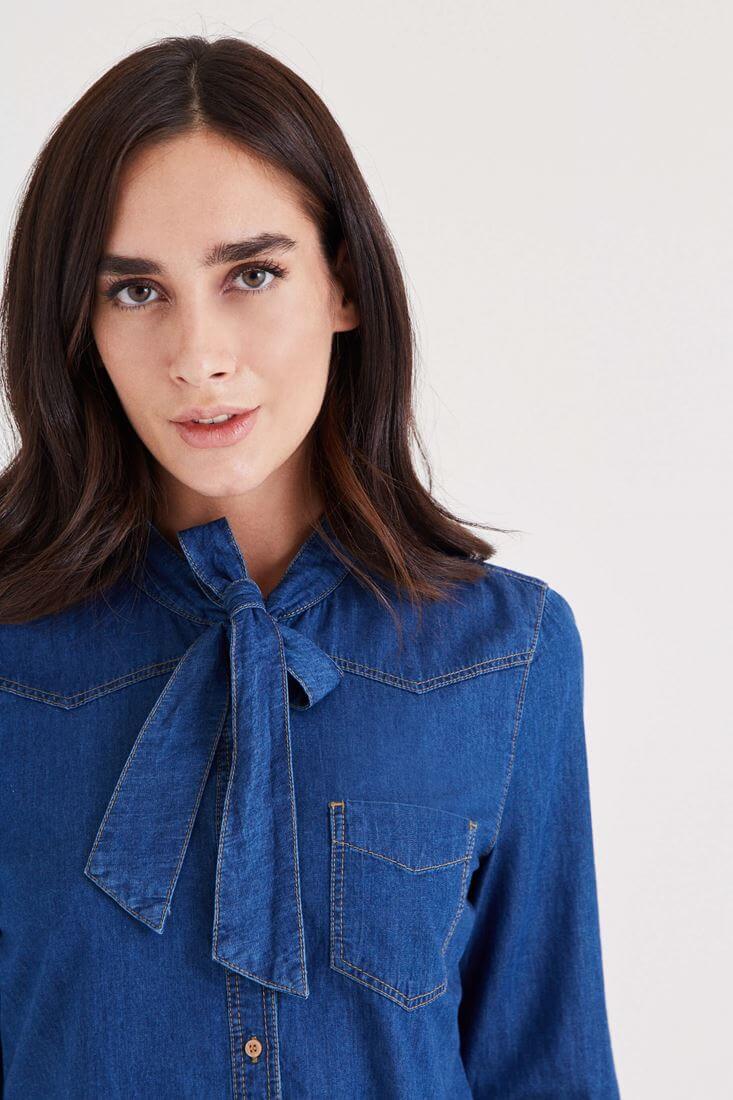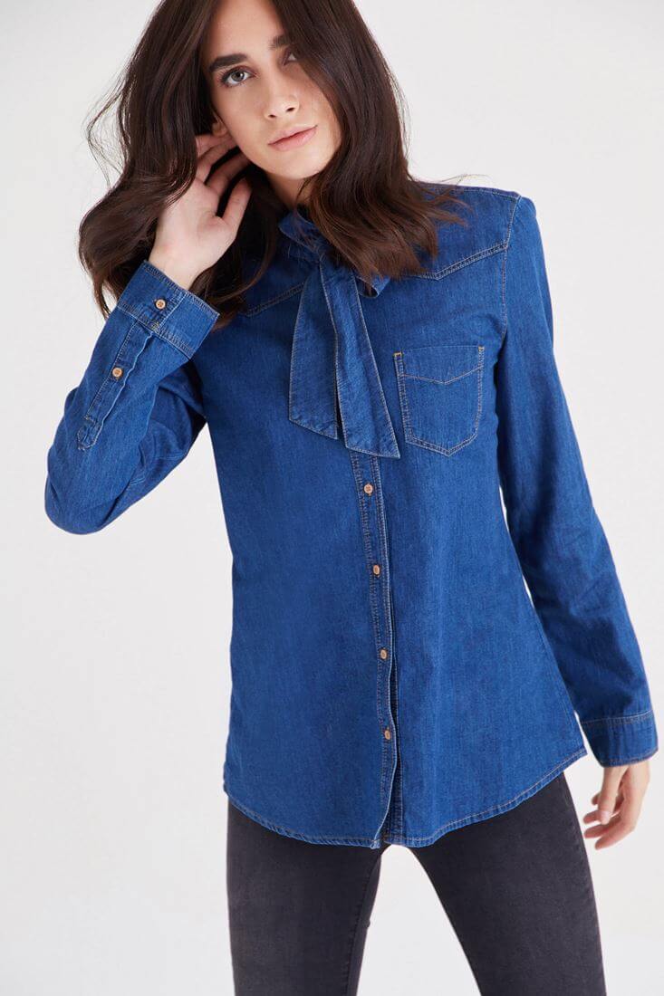 Oxxo Yakası Fiyonk Detaylı Kot Gömlek 16133106