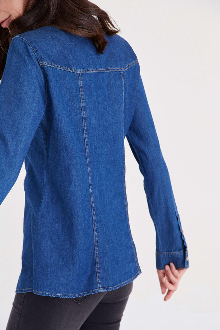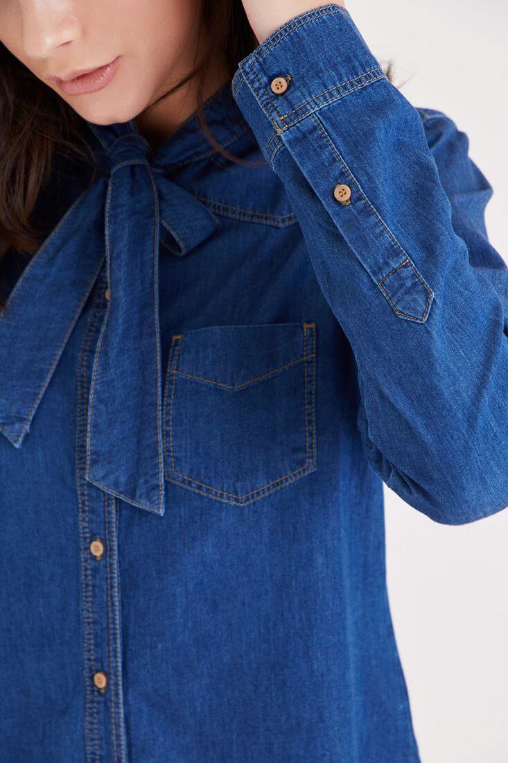 Mavi Yakası Fiyonk Detaylı Kot Gömlek