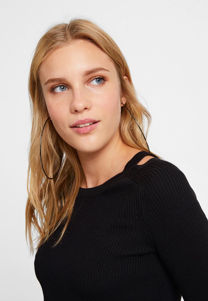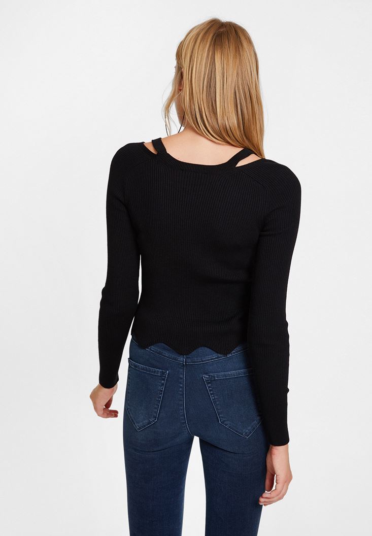 Siyah Yakası Kesik Detaylı Uzun Kollu Triko