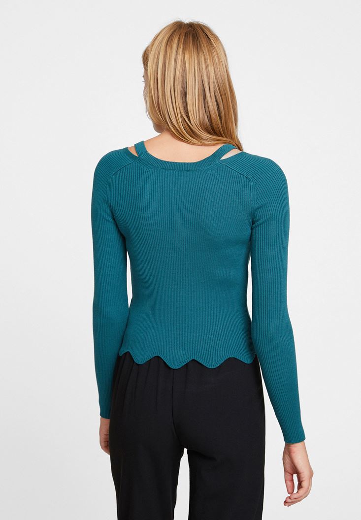 • Bayan Yeşil Yakası Kesik Detaylı Uzun Kollu Triko