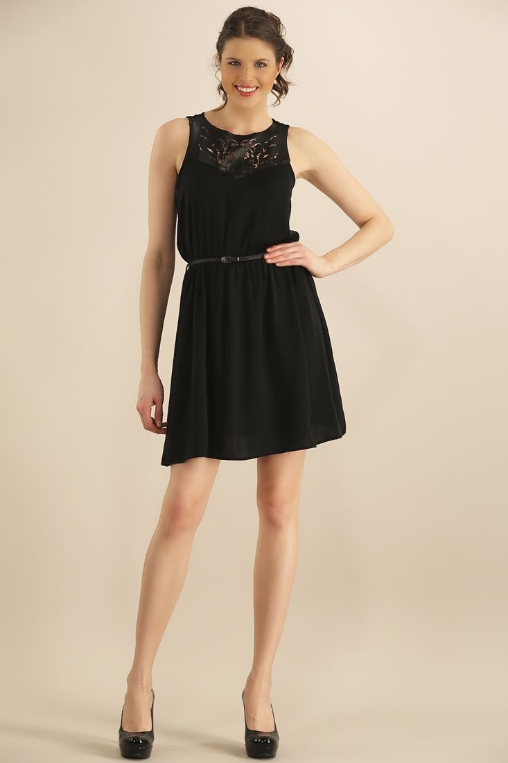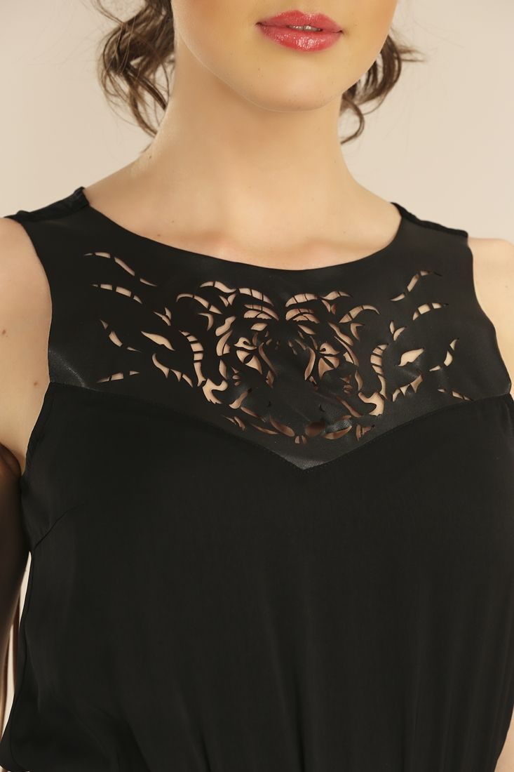 • Bayan Siyah Yakası Lazer Kesim Elbise