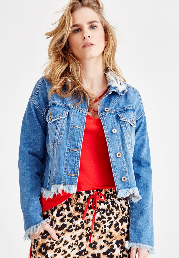 Oxxo Yakası Yırtık Detaylı Jean Ceket 207044106
