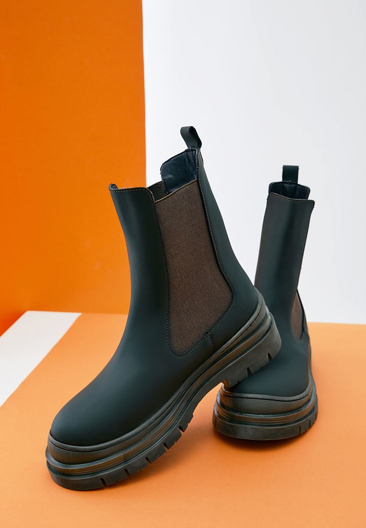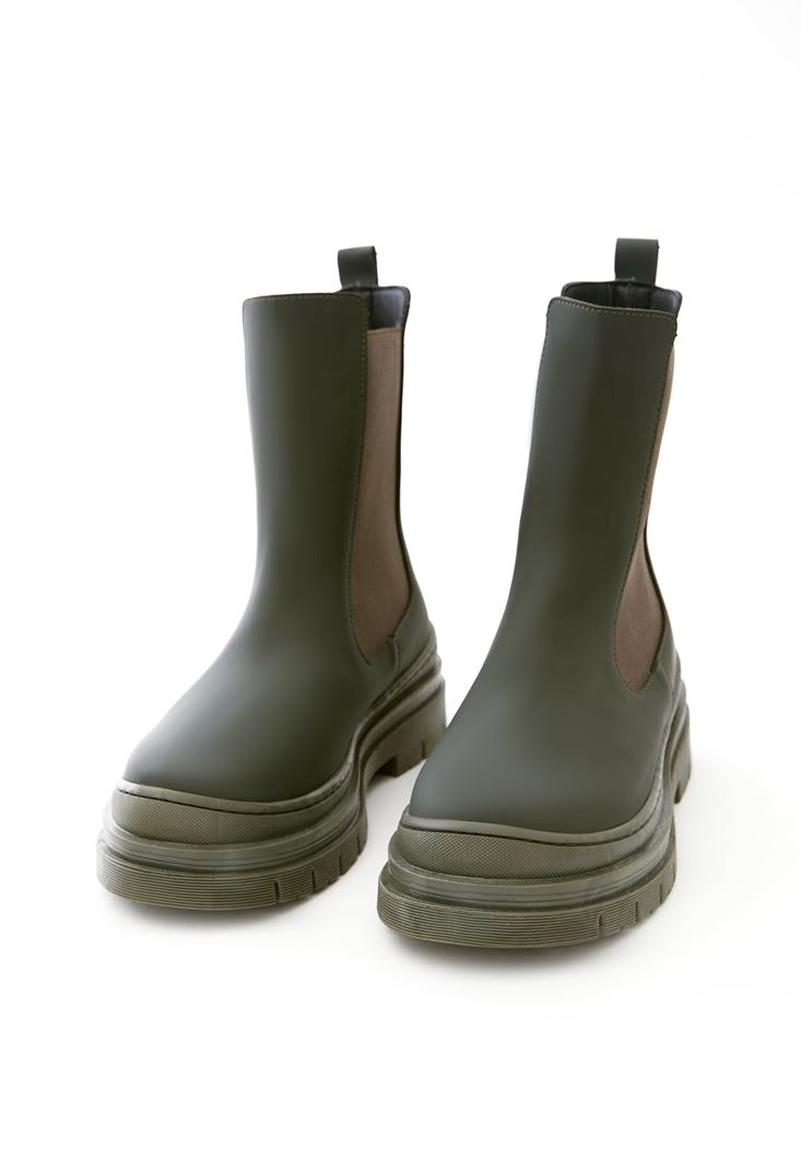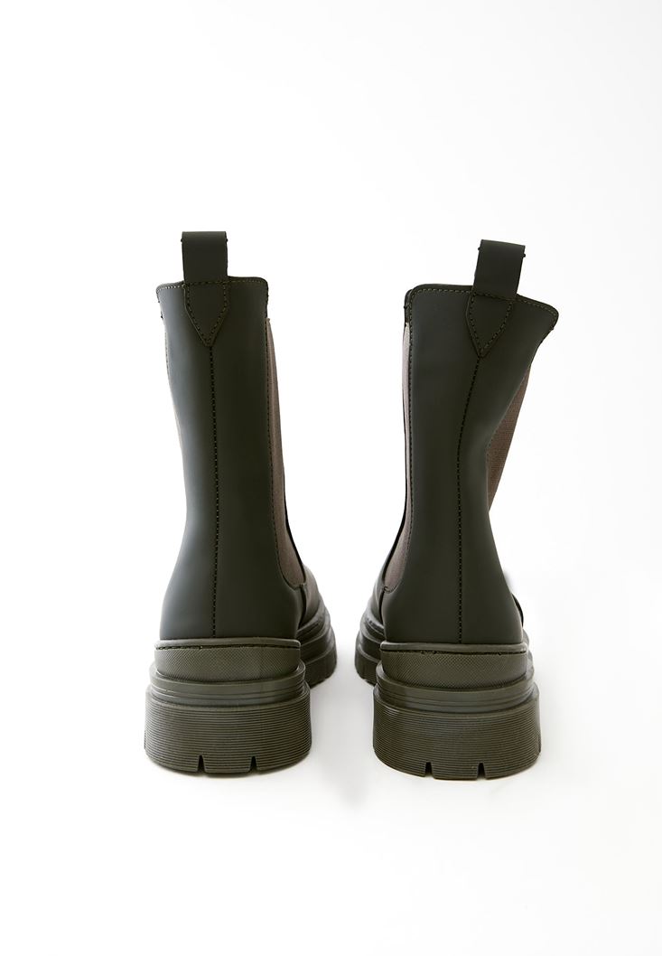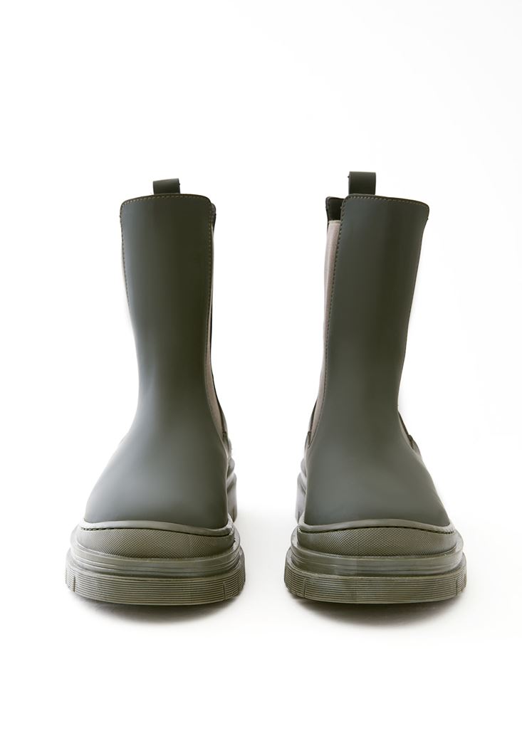 Yeşil Yanı Lastikli Vegan Deri Bot