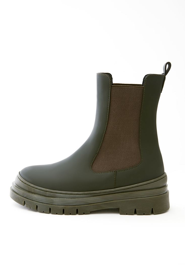 • Bayan Yeşil Yanı Lastikli Vegan Deri Bot