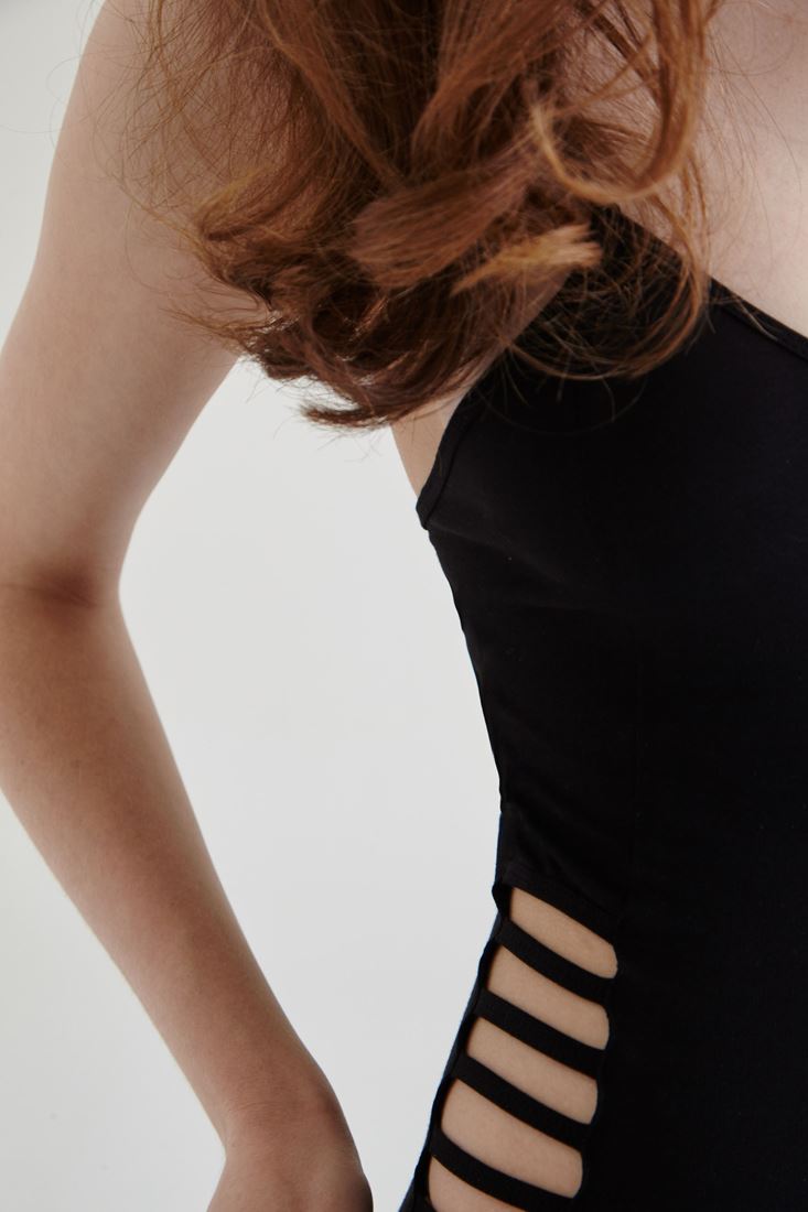 Siyah Yanları Dekolteli Askılı Body