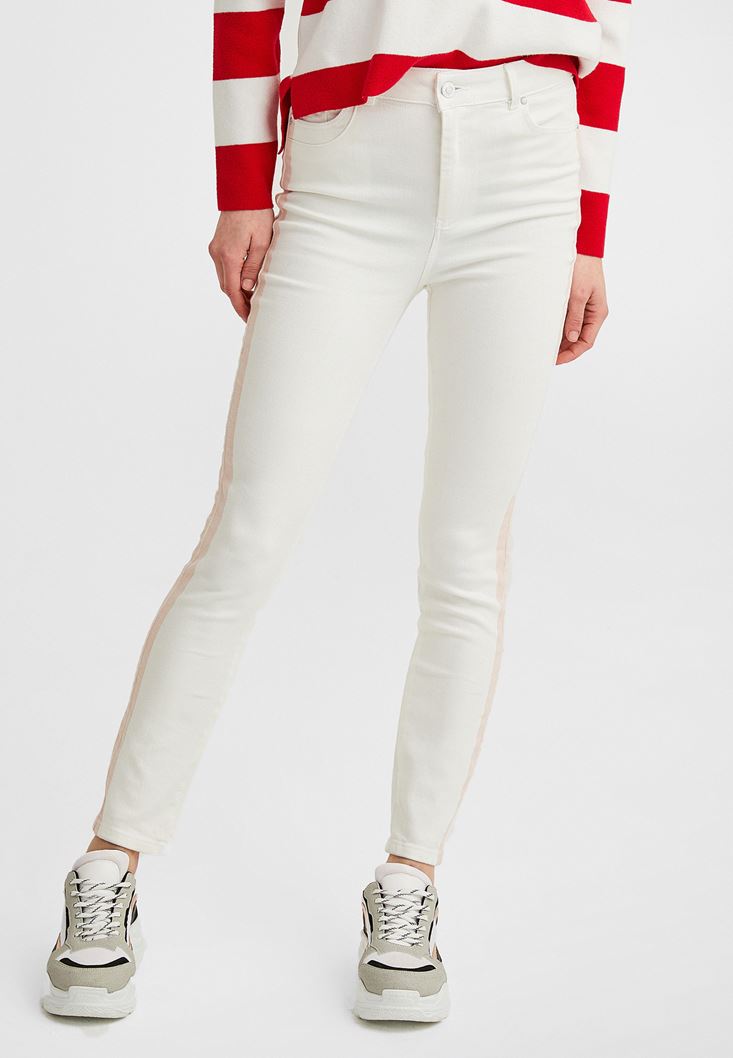 • Bayan Krem Yanları Şeritli Boru Paça Pantolon