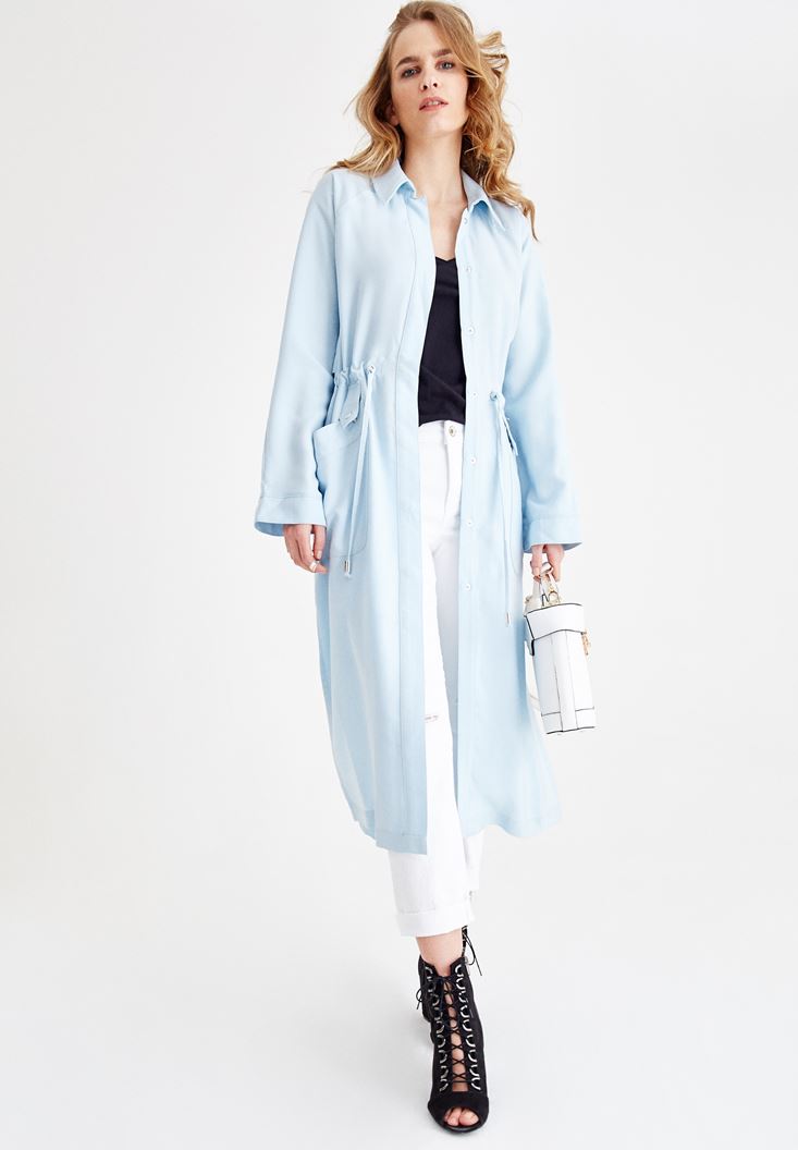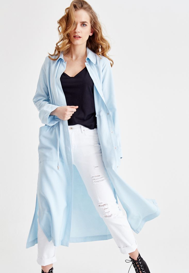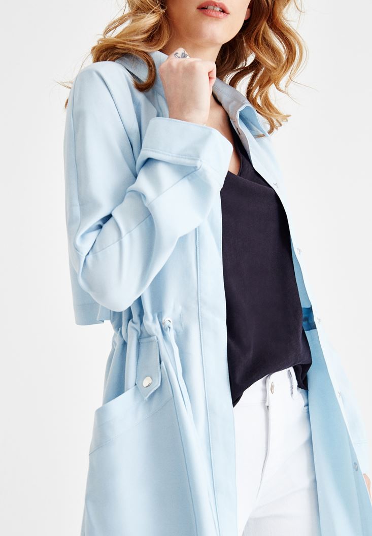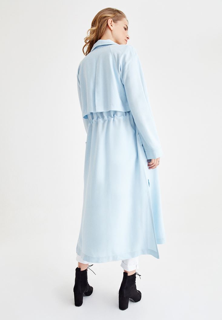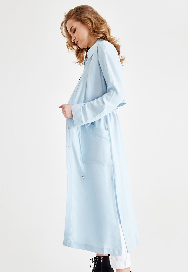 Mavi Yanları Yırtmaçlı Cep Detaylı Trençkot ( TENCEL™ )