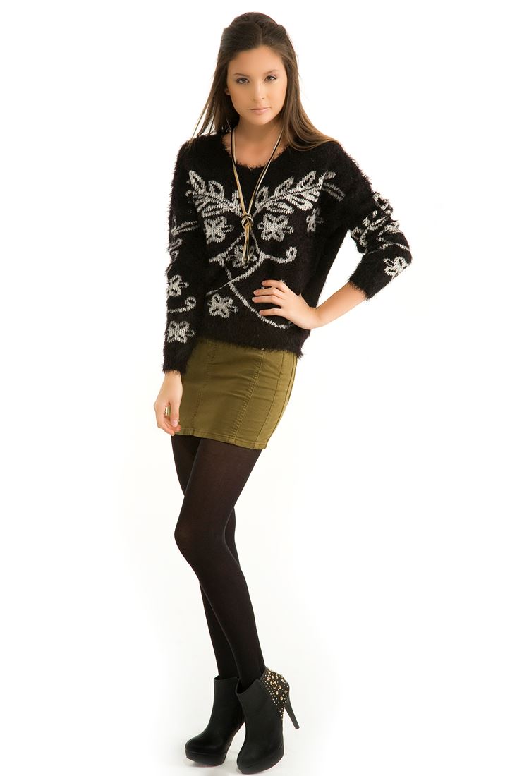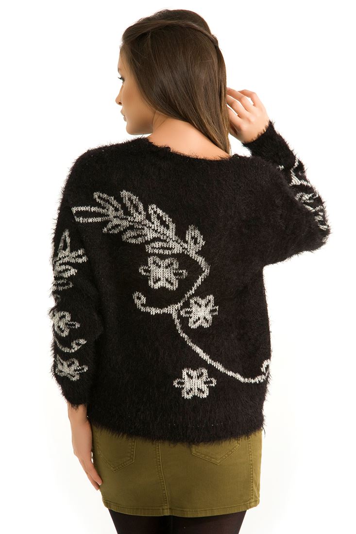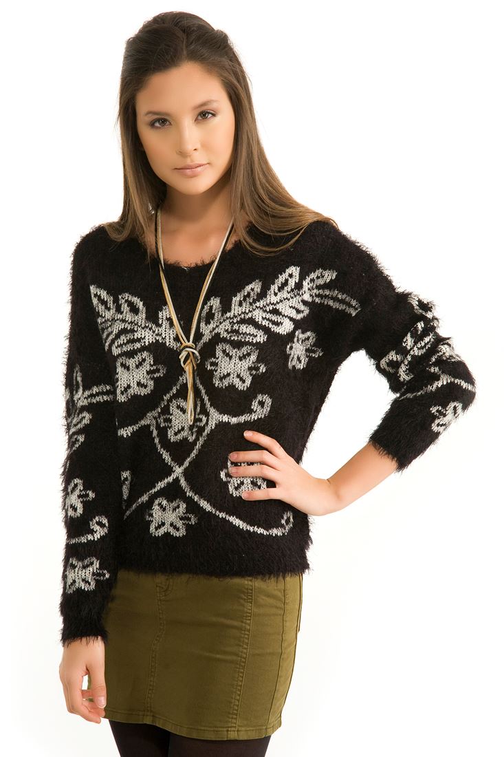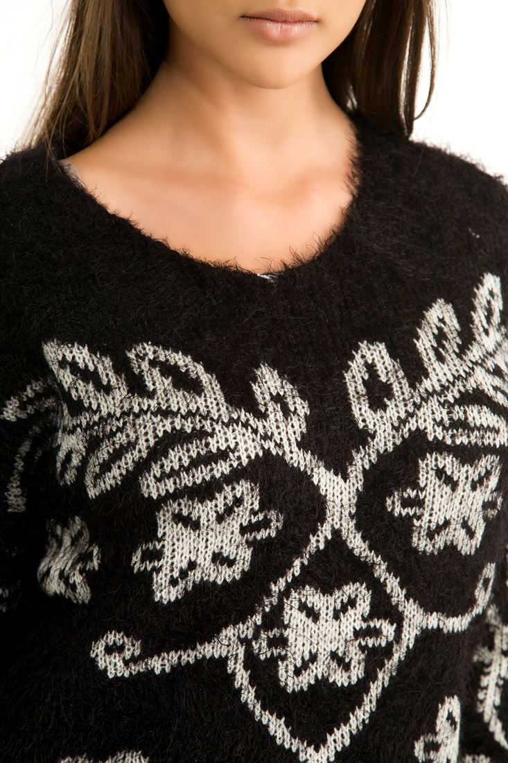 • Bayan Çok Renkli Yaprak Desenli Kazak