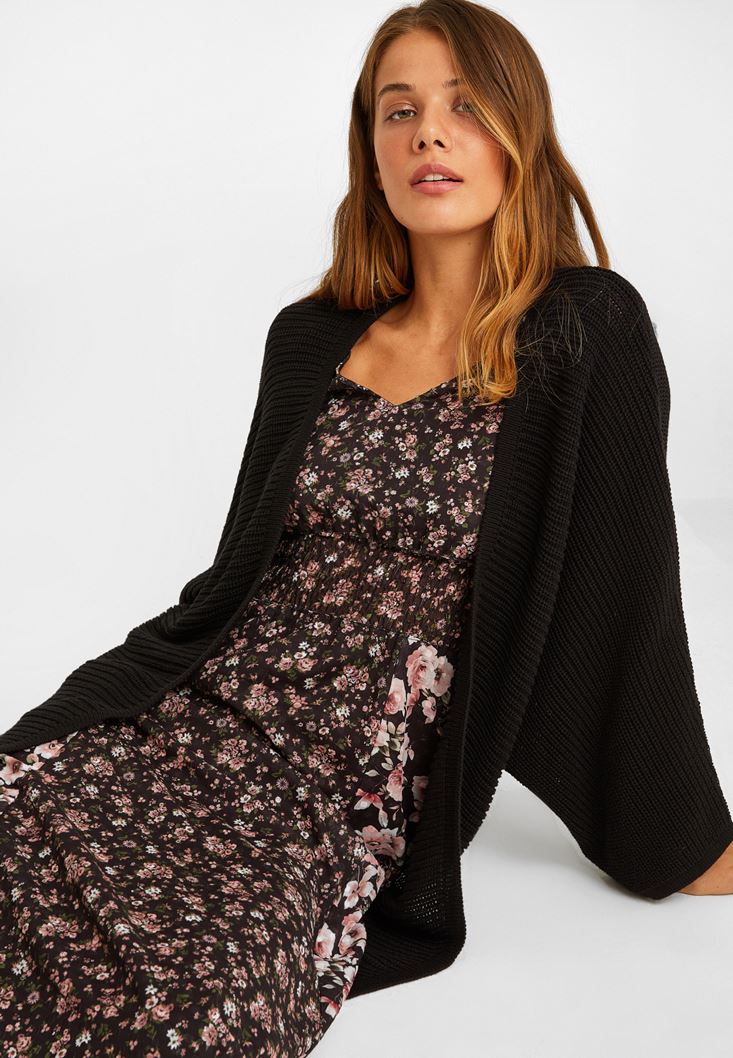 • Bayan Siyah Yarasa Kol Triko Hırka