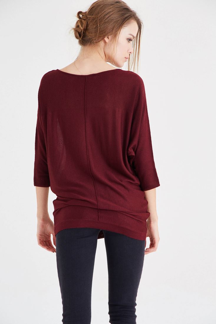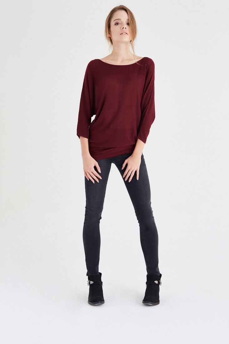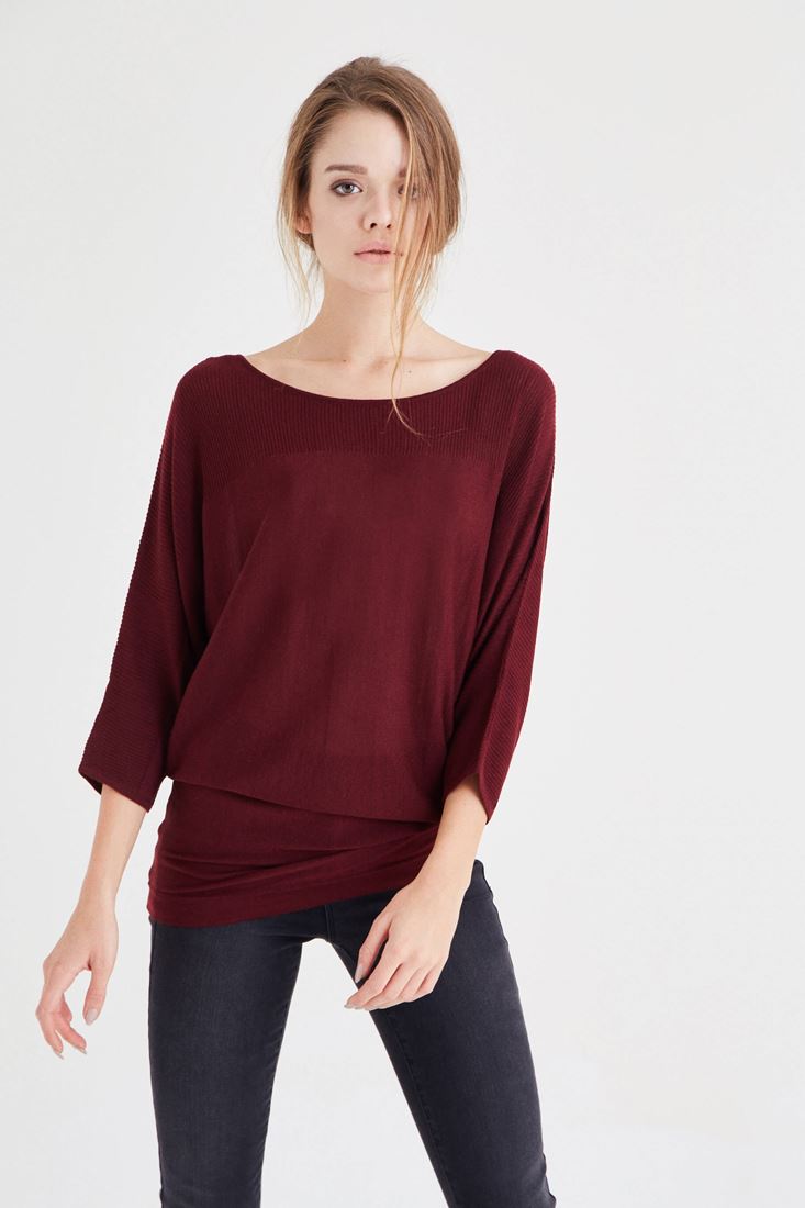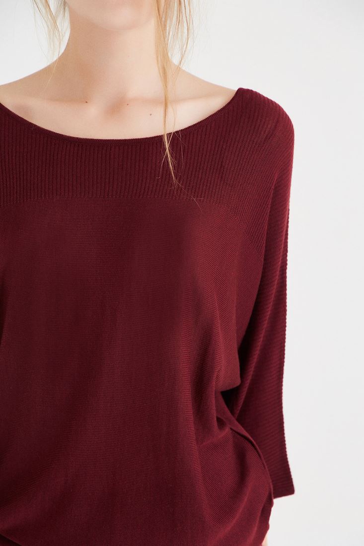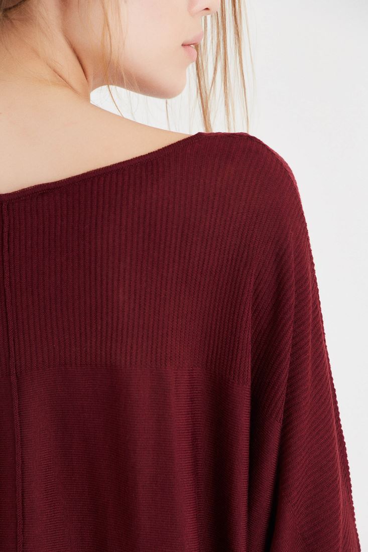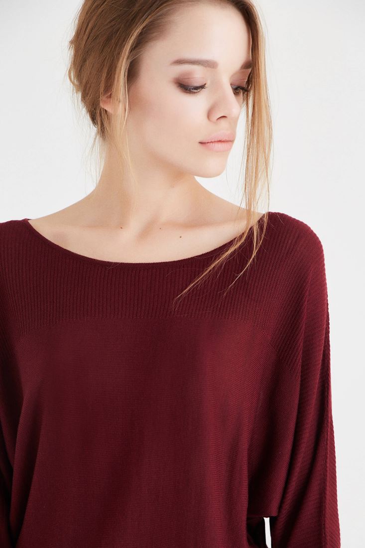 Bordo Yarasa Kol Triko