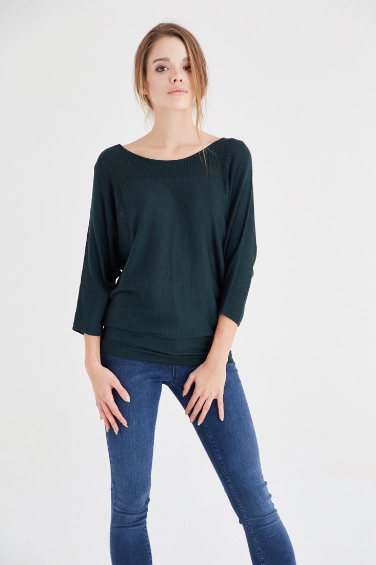 • Bayan Yeşil Yarasa Kol Triko
