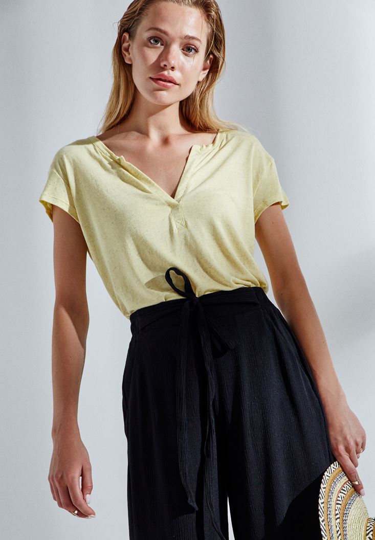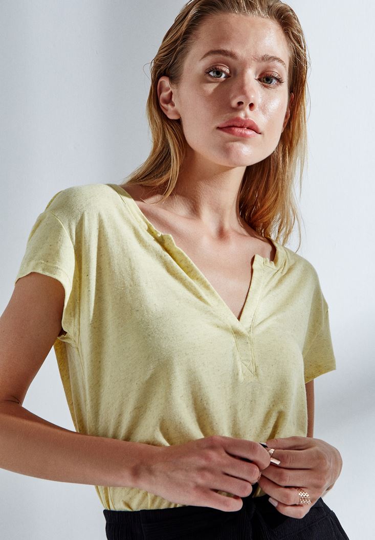OXXO yarim kollu tisört ile dolabinizda rahatlik açisindan favoriniz olan tisört modellerine bir yenisini daha ekleyeceksiniz. Beli lastikli bol pantolonlarinizla kusursuz bir uyum saglayacak olan tisörtü kendine güvenen tarzinizin en rahat haliyle bile sik oldugunu göstermek için kombinleyebilirsiniz. Altina spor ayakkabilarinizi, sandaletlerinizi ya da espadrillerinizi giyerek kombininizi tamamlarken fötr sapkalar ya da bileginize baglayacaginiz bandanalarla hareket de katabilirsiniz. Günlük giyim için ideal olan tisörtü her türlü denim kiyafetinizle birlikte kullanabilirsiniz. Tulumlarinizin içinde de gayet sportif ve tarz duracak olan tisörtü mini eteklerinizle de giyebilirsiniz. Yarim kollu tisört ile özgün tarzinizi ortaya koyarken çevrenizdekiler üzerinde de etki birakacaksiniz!