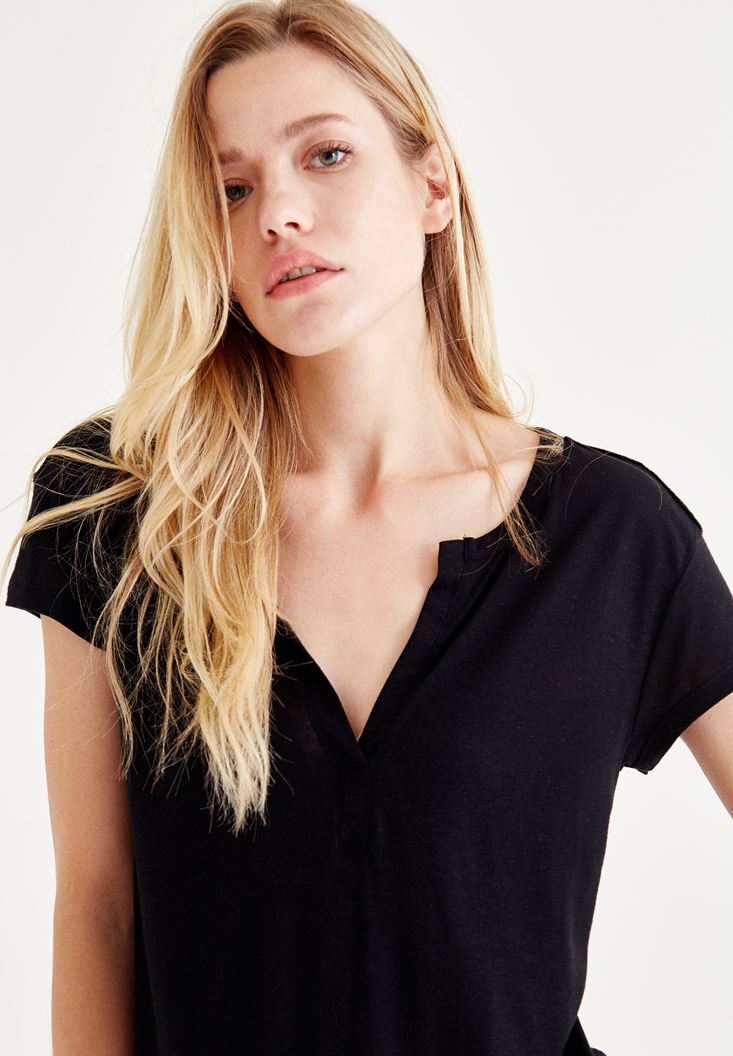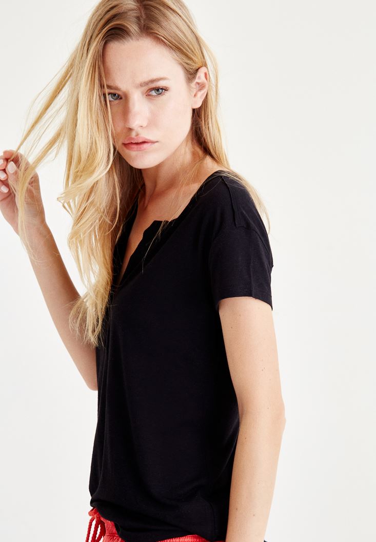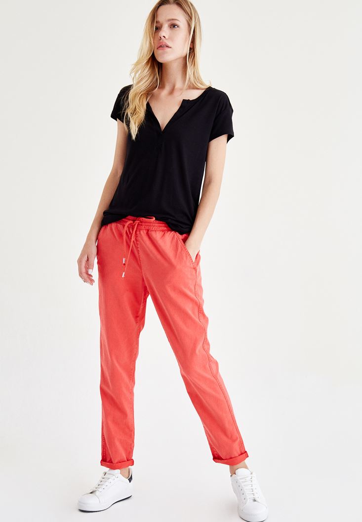 OXXO yarim kollu tisört ile dolabinizda rahatlik açisindan favoriniz olan tisört modellerine bir yenisini daha ekleyeceksiniz. Beli lastikli bol pantolonlarinizla kusursuz bir uyum saglayacak olan tisörtü kendine güvenen tarzinizin en rahat haliyle bile sik oldugunu göstermek için kombinleyebilirsiniz. Altina spor ayakkabilarinizi, sandaletlerinizi ya da espadrillerinizi giyerek kombininizi tamamlarken fötr sapkalar ya da bileginize baglayacaginiz bandanalarla hareket de katabilirsiniz. Günlük giyim için ideal olan tisörtü her türlü denim kiyafetinizle birlikte kullanabilirsiniz. Tulumlarinizin içinde de gayet sportif ve tarz duracak olan tisörtü mini eteklerinizle de giyebilirsiniz. Yarim kollu tisört ile özgün tarzinizi ortaya koyarken çevrenizdekiler üzerinde de etki birakacaksiniz!
