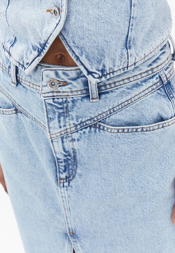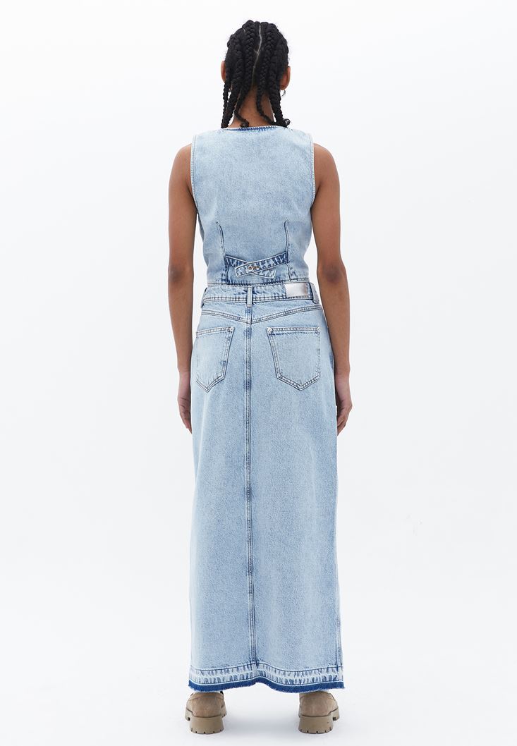 Yüksek Bel Uzun Denim Etek