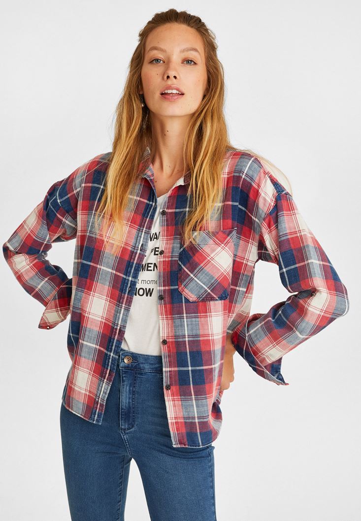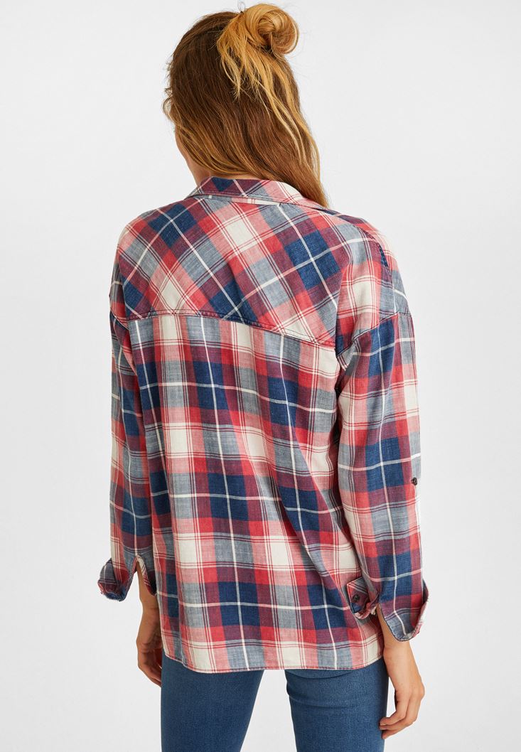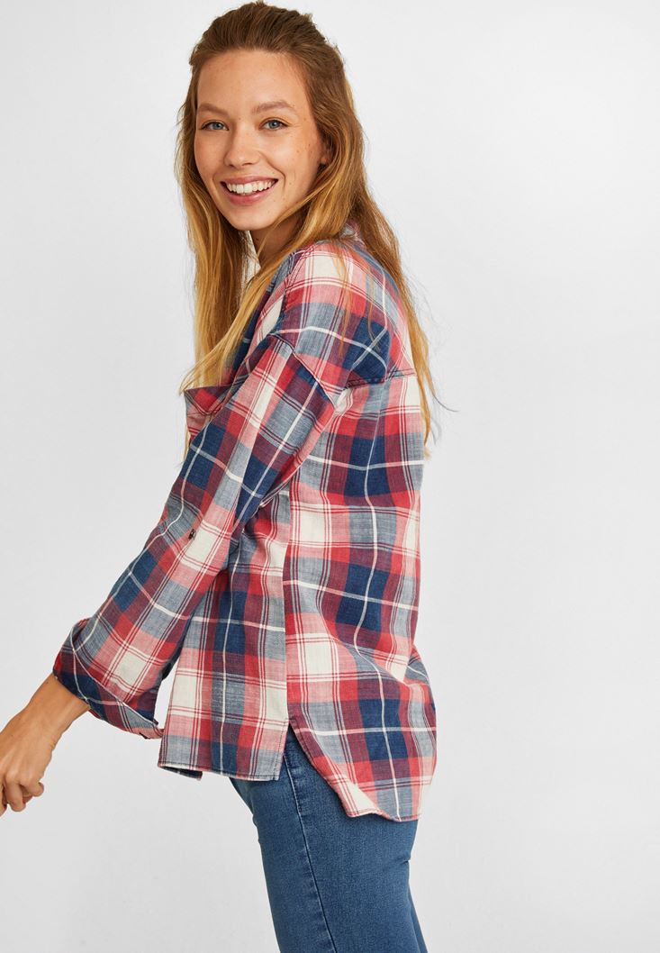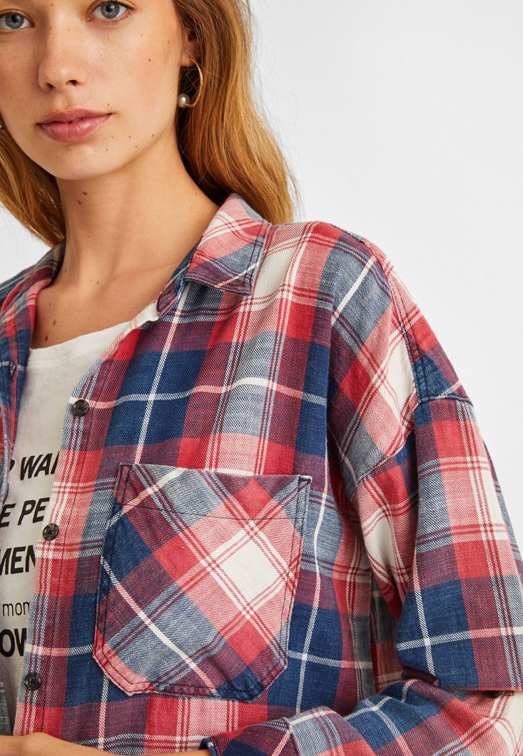 • Bayan Çok Renkli Yıkama Detaylı Ekose Gömlek