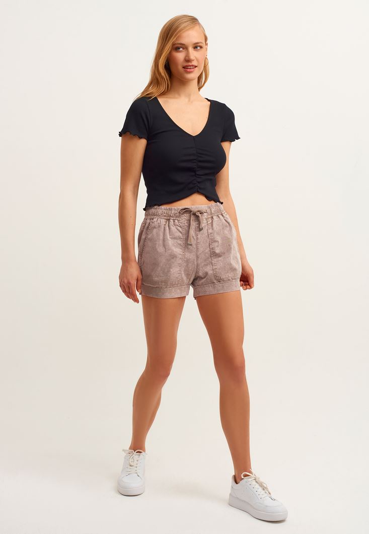 Açık Kahverengi Yıkama Efektli Mini Şort