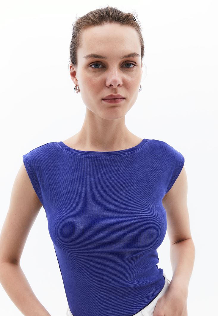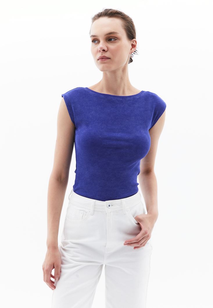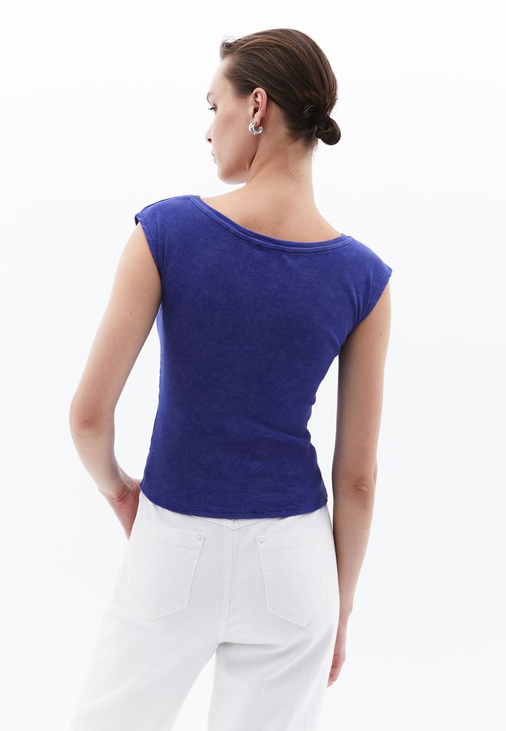 Mor Yıkamalı Bot Yaka Tişört