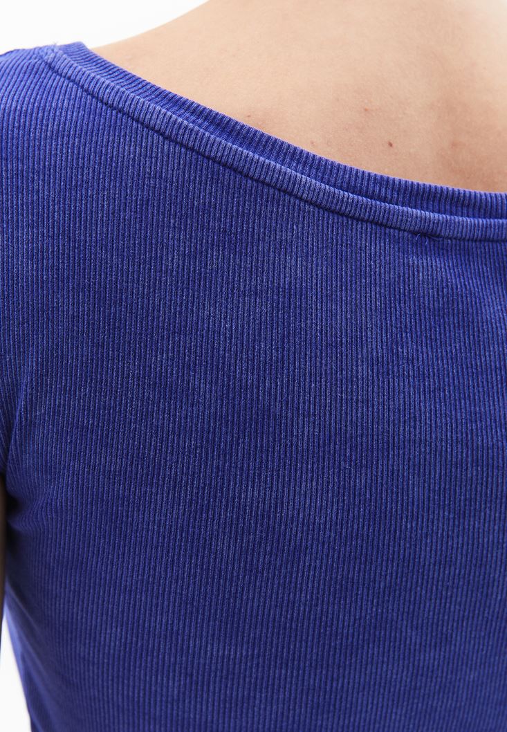 • Bayan Mor Yıkamalı Bot Yaka Tişört