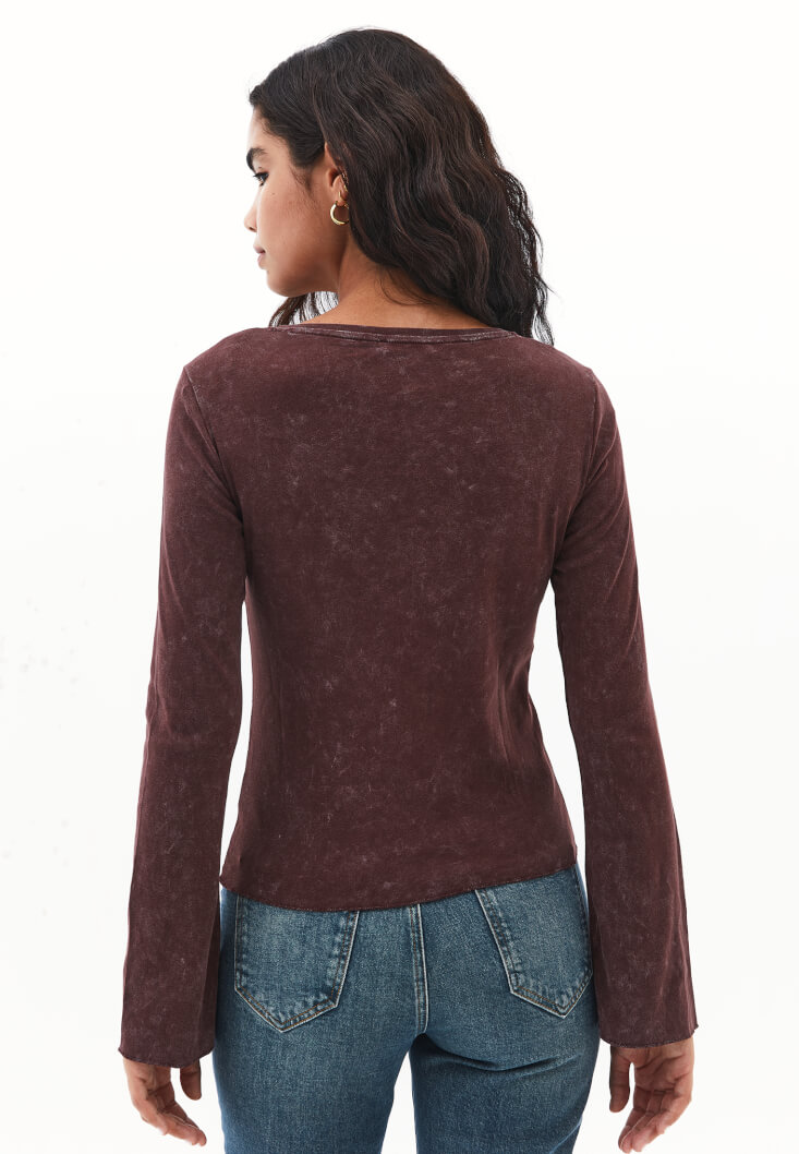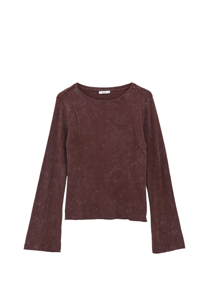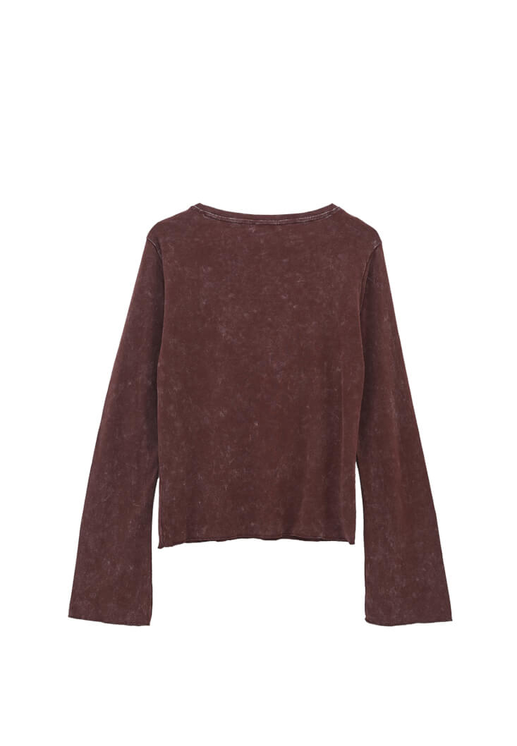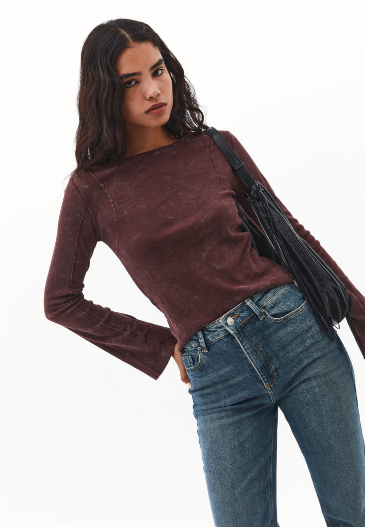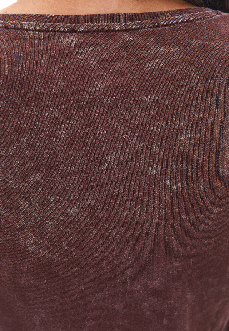 Kahverengi Yıkamalı Bot Yaka Tişört