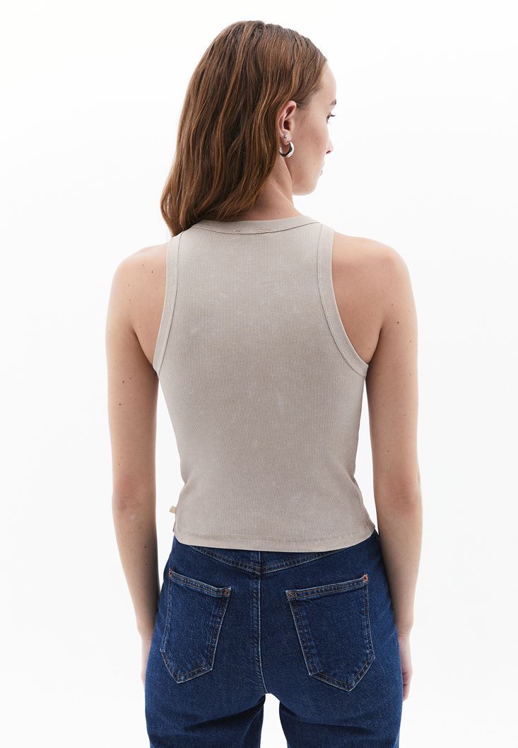 • Bayan Bej Yıkamalı Halter Yaka Atlet