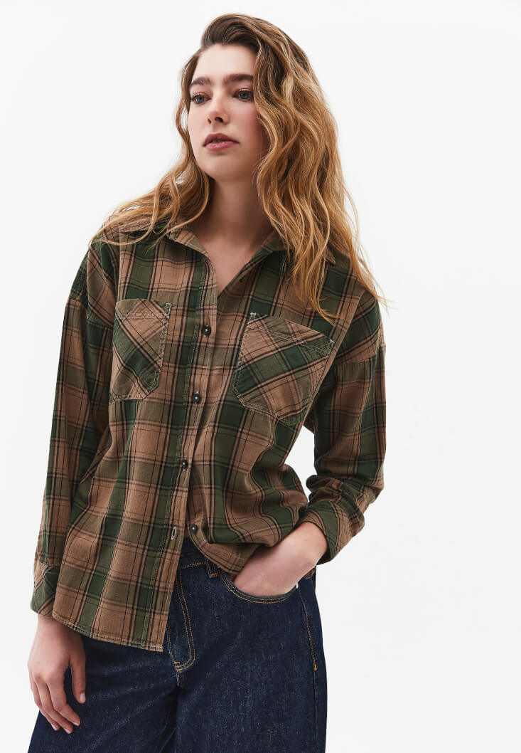 • Bayan Çok Renkli Yıkamalı Oversize Gömlek