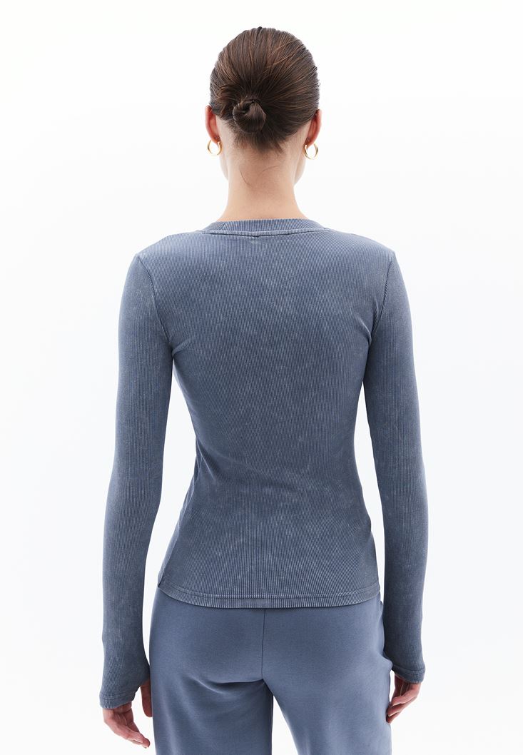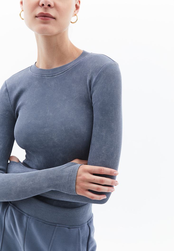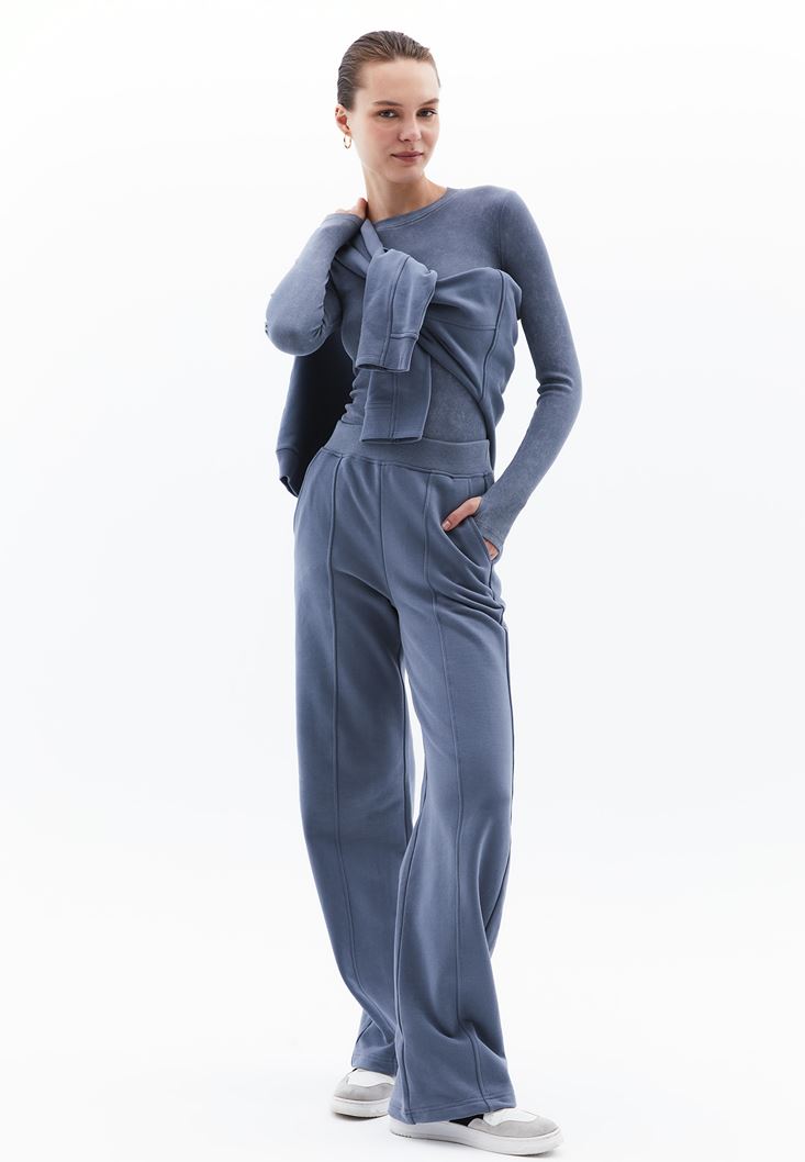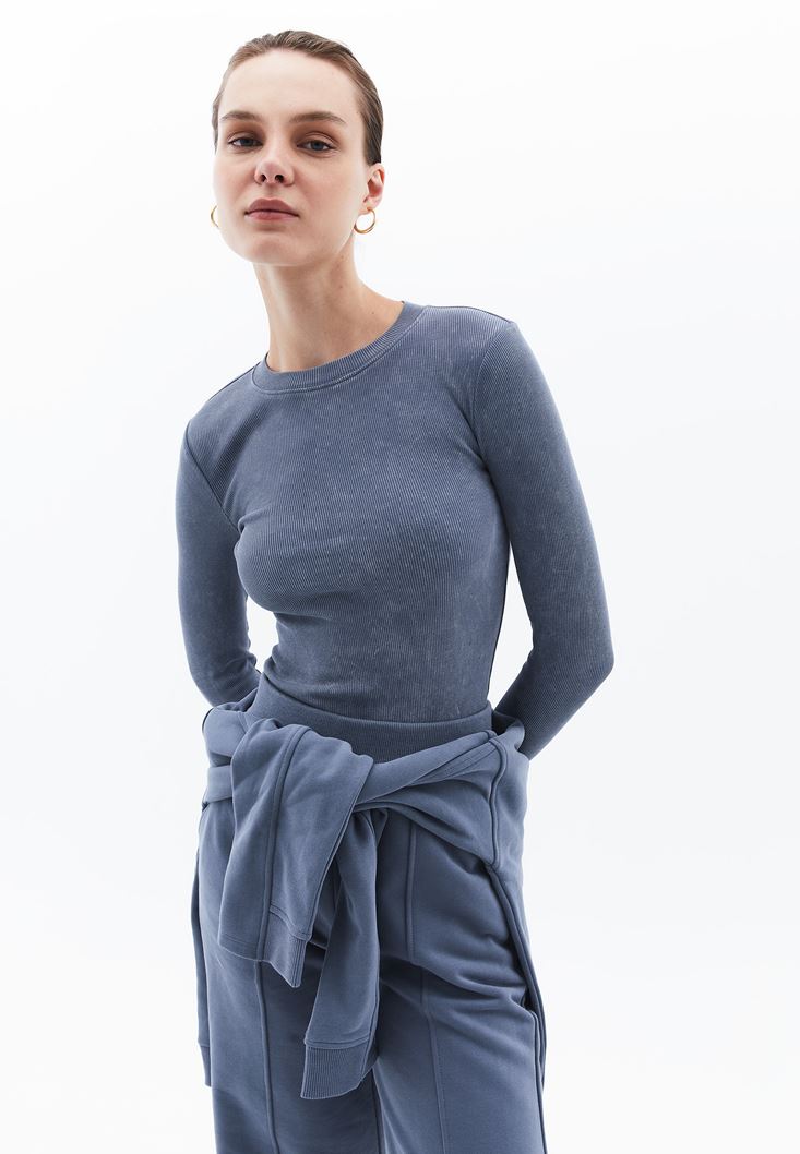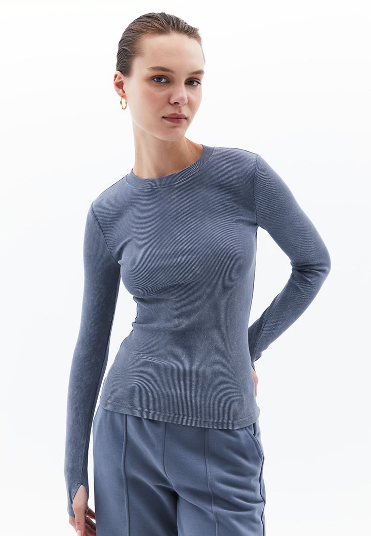 • Bayan Gri Yıkamalı Sıfır Yaka Tişört