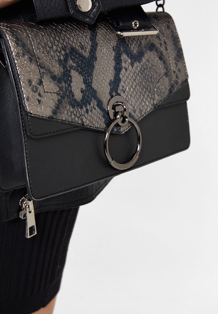 Siyah Yılan Derisi Desenli Askılı Çanta