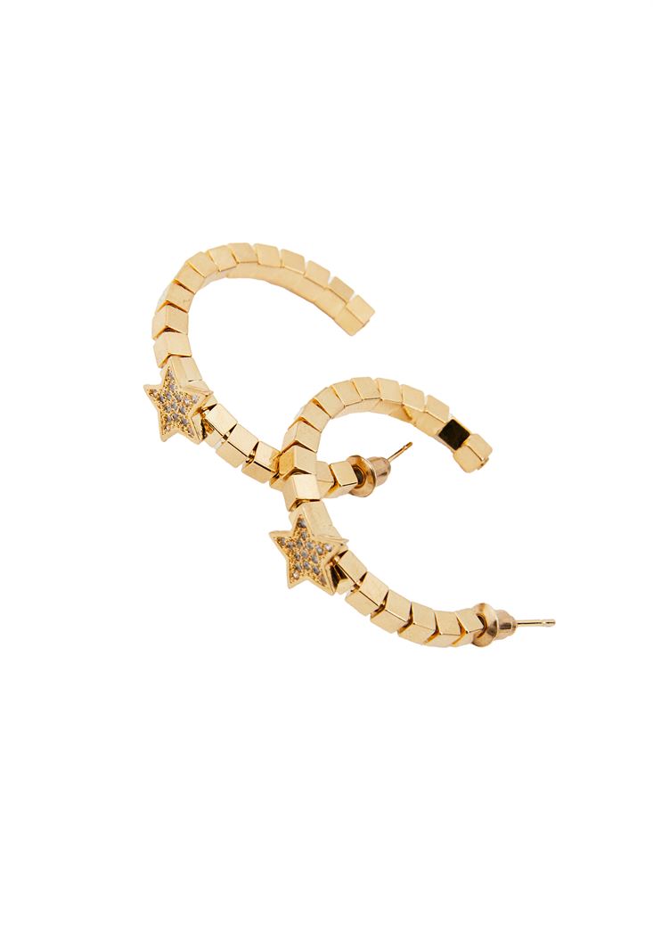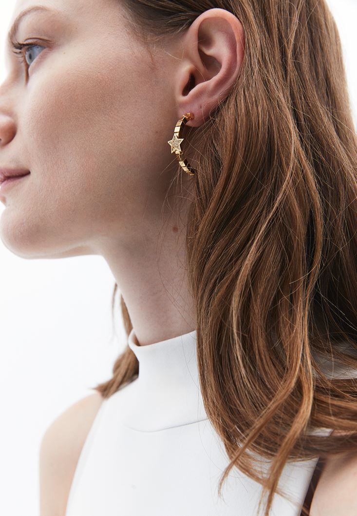 • Bayan Altın Yıldız Detaylı Halka Küpe