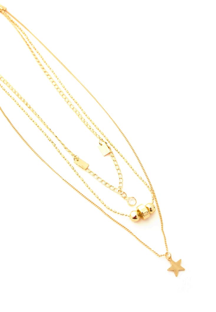 Altın Yıldız Uçlu Çoklu Kolye
