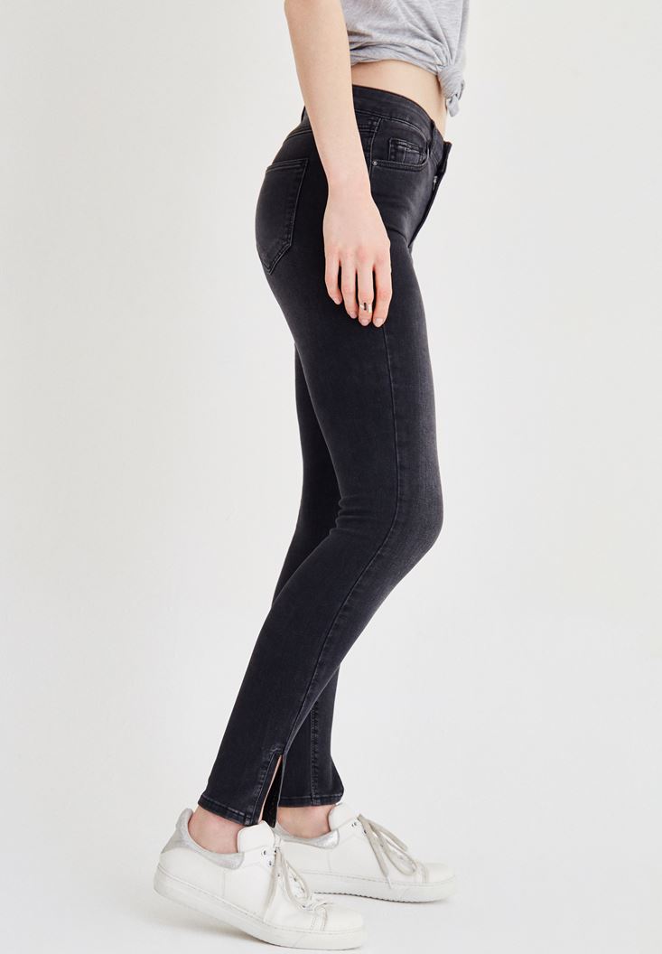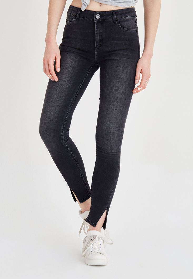 Siyah Yırtmaç Detaylı Ara Bel Kot Pantolon