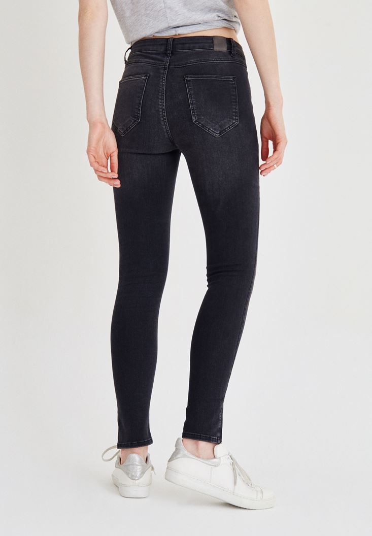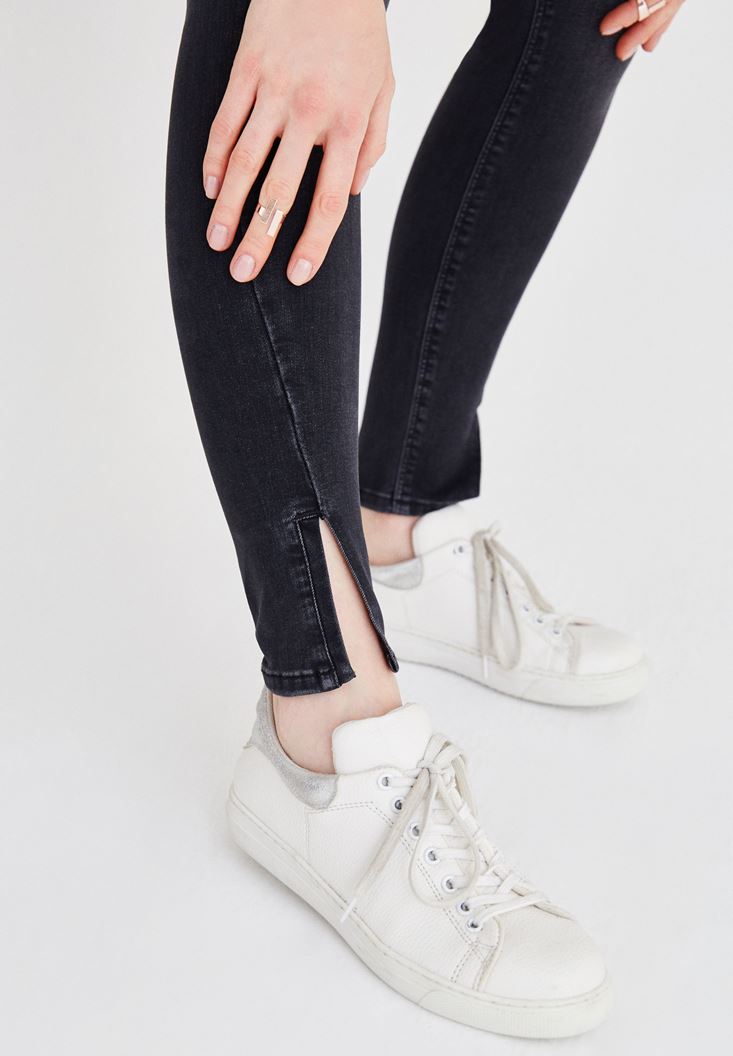 • Bayan Siyah Yırtmaç Detaylı Ara Bel Kot Pantolon