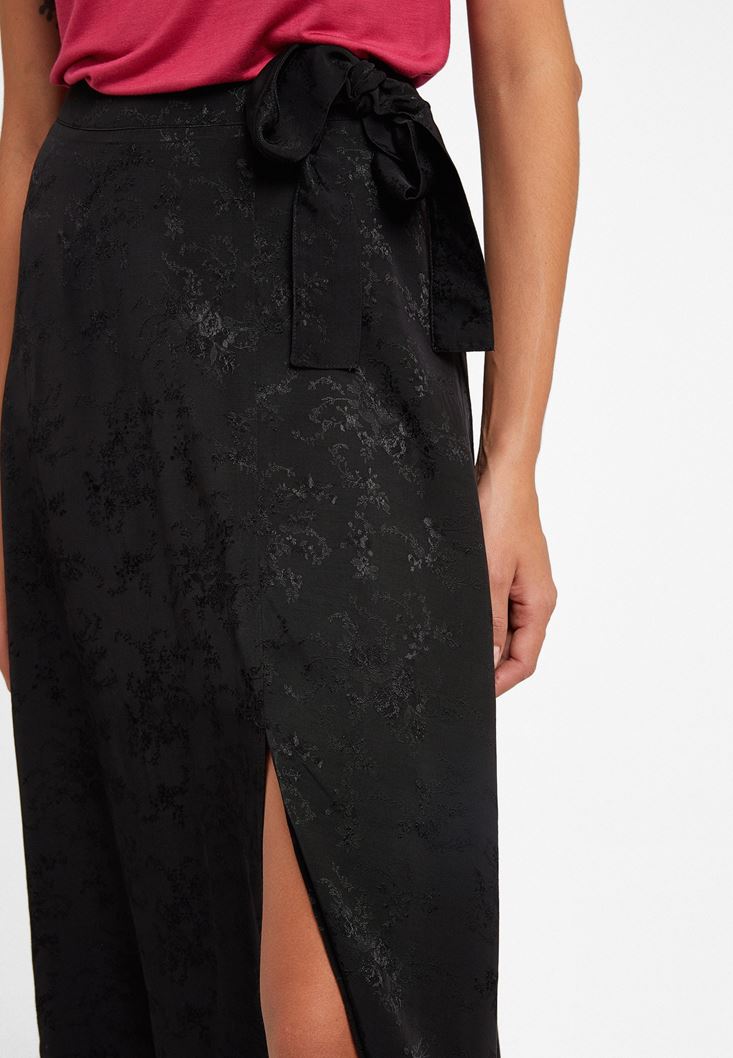 • Bayan Siyah Yırtmaç Detaylı Midi Boy Etek
