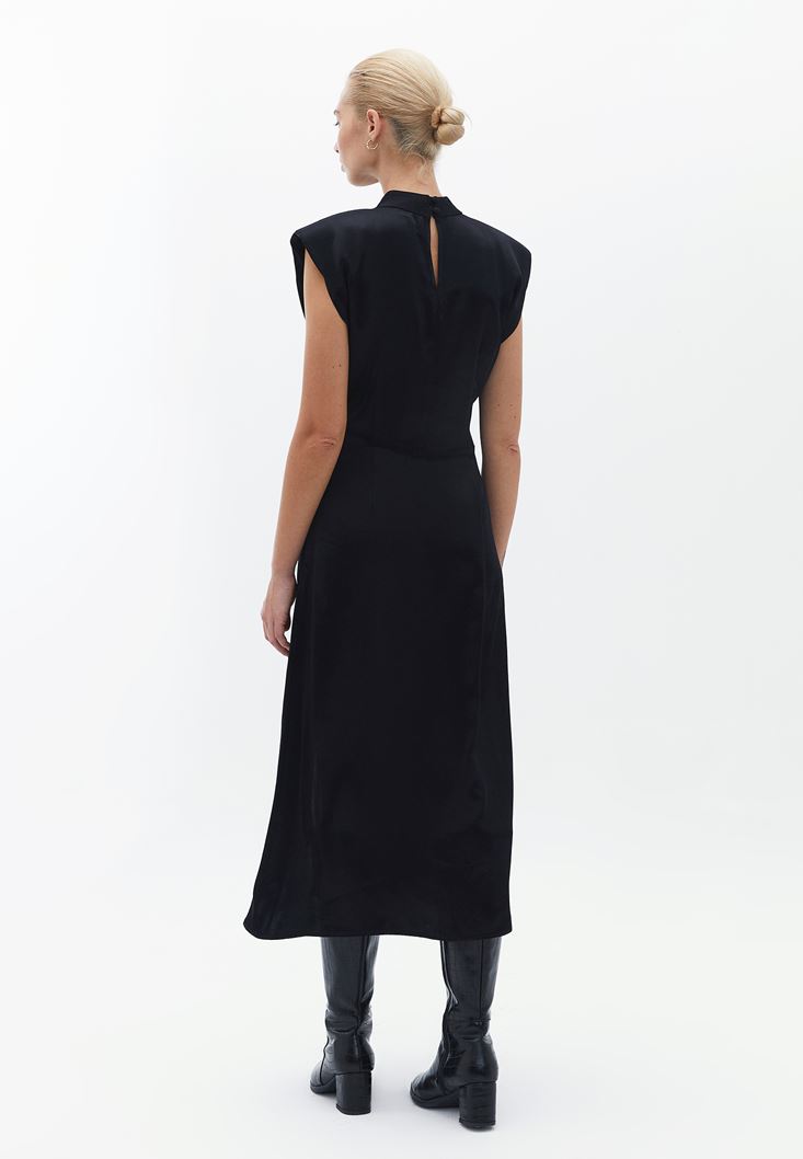 Siyah Yırtmaç Detaylı Saten Elbise