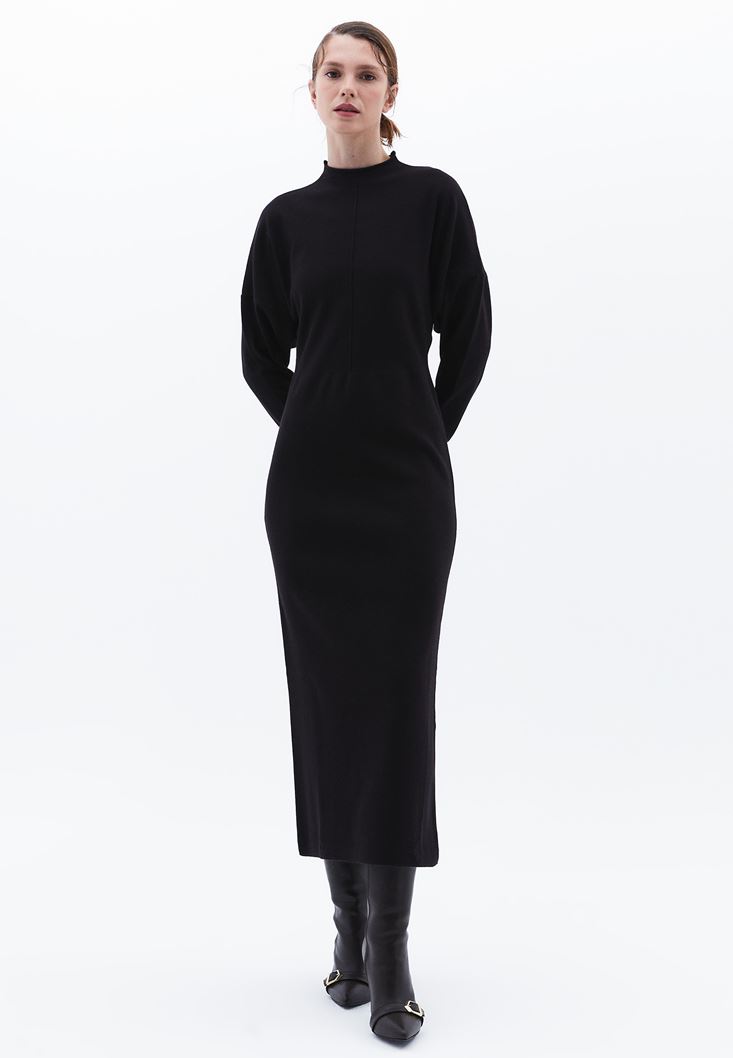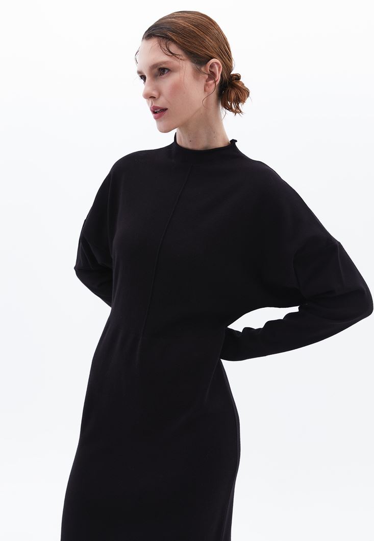 • Bayan Siyah Yırtmaç Detaylı Uzun Elbise