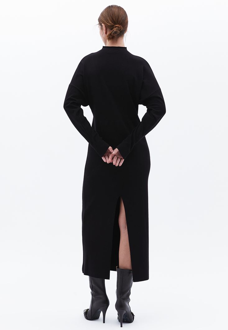 Siyah Yırtmaç Detaylı Uzun Elbise