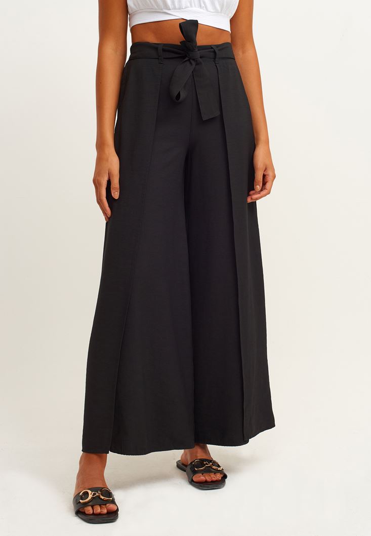 Siyah Yırtmaç Detaylı Wide-Leg Pantolon