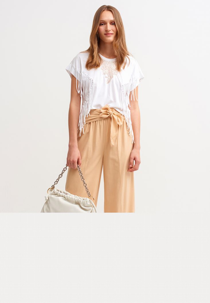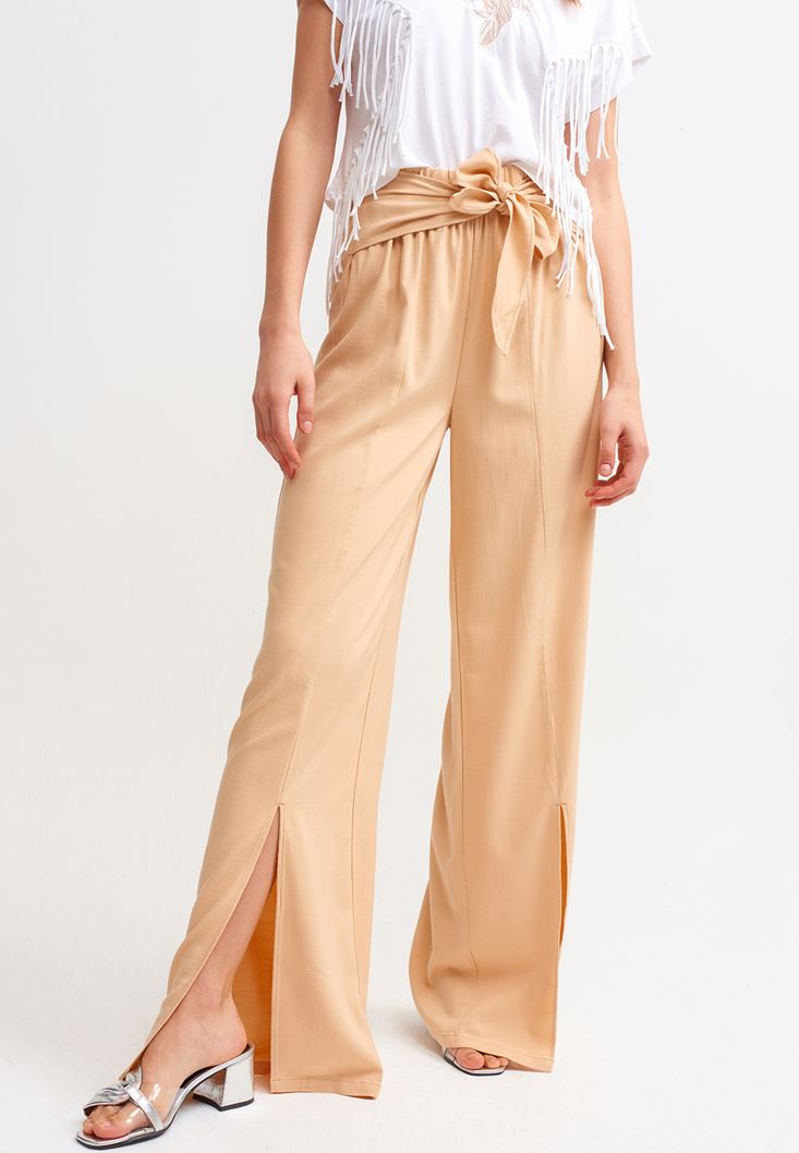 Bej Yırtmaç Detaylı Yüksek Bel Pantolon