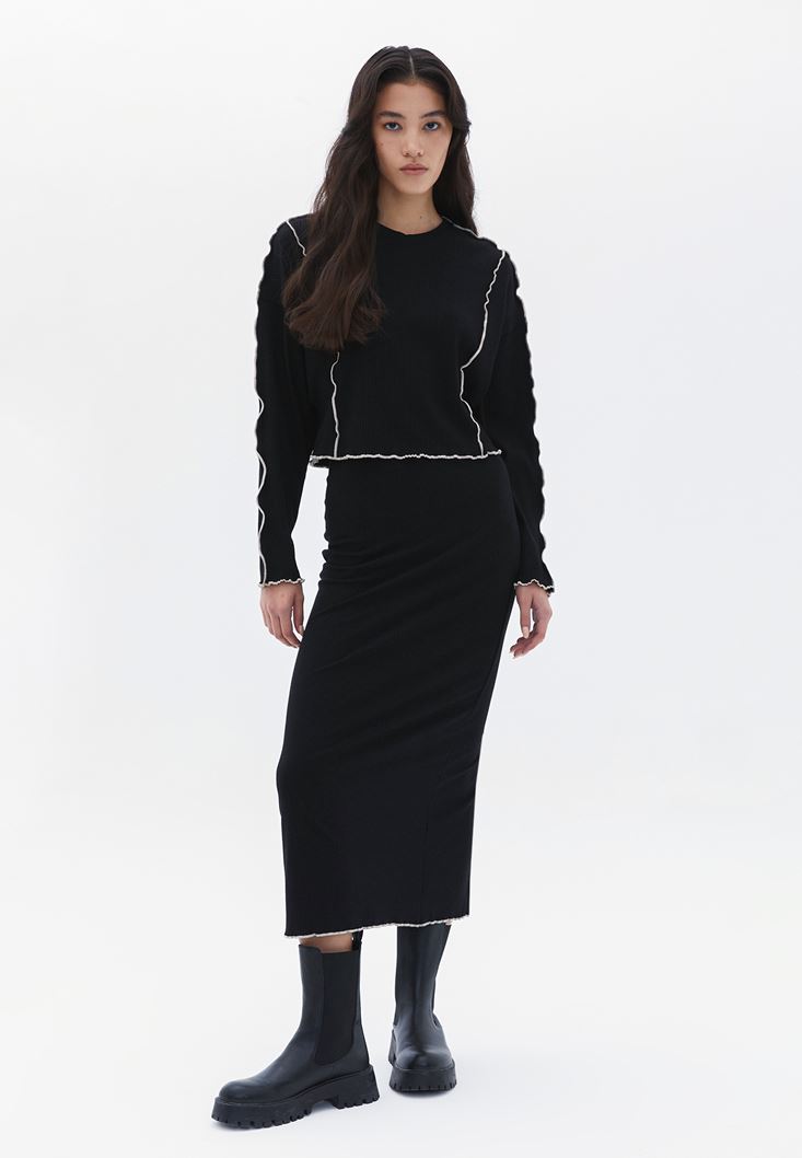 Yırtmaçlı Etek ve Crop Bluz Kombini