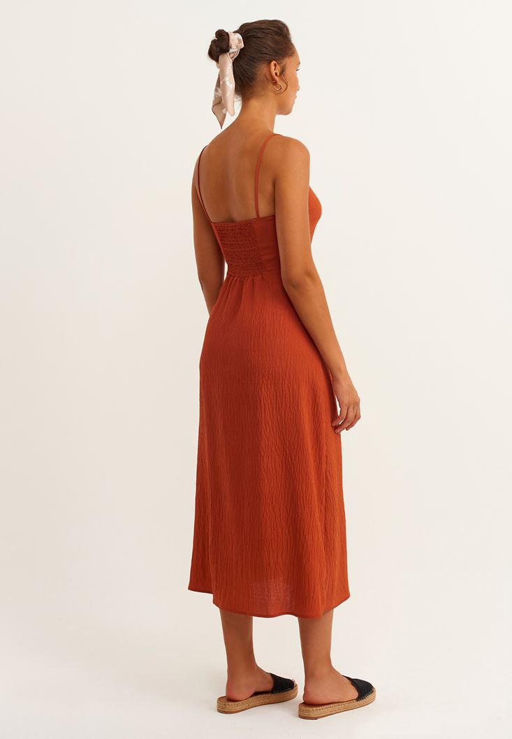 Kiremit Yırtmaçlı Maxi Boy Elbise