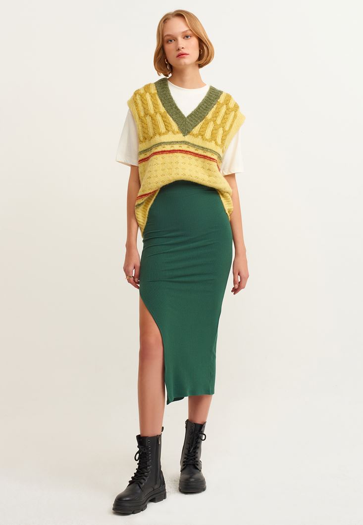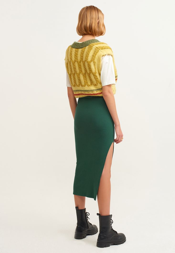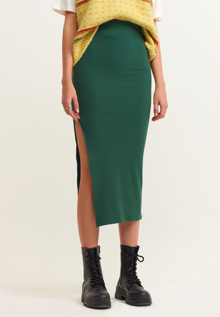 Yeşil Yırtmaçlı Maxi Boy Etek