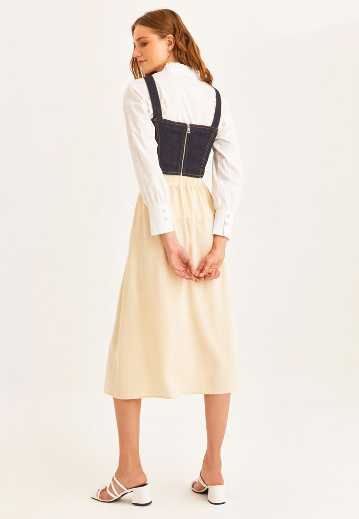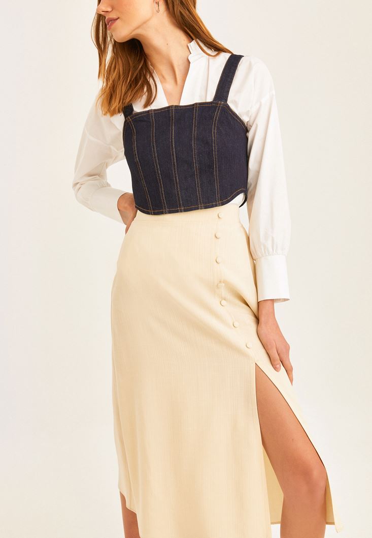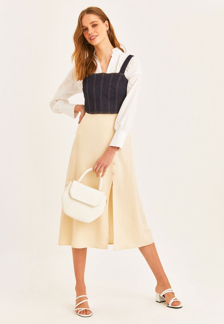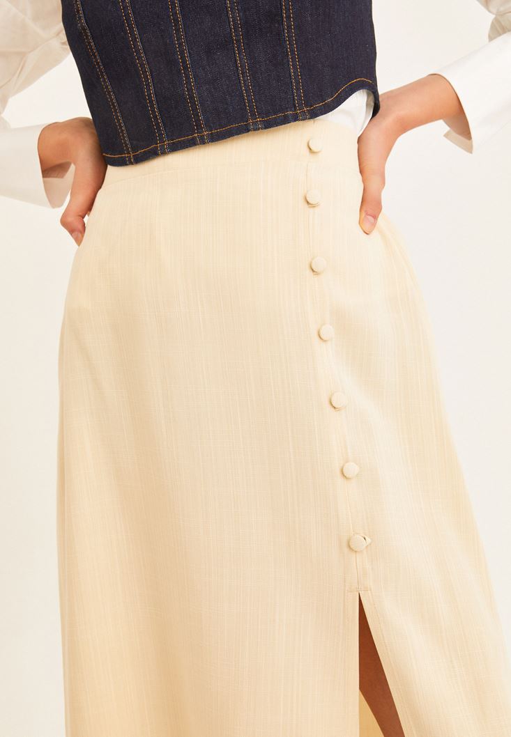 Bej Yırtmaçlı Midi Boy Etek ( TENCEL™ )