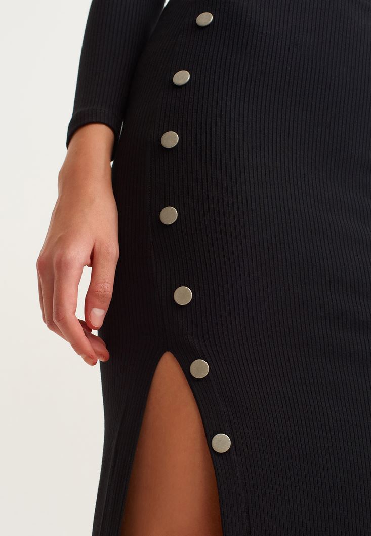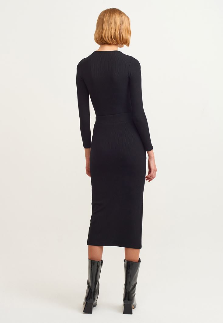 • Bayan Siyah Yırtmaçlı Midi Boy Etek