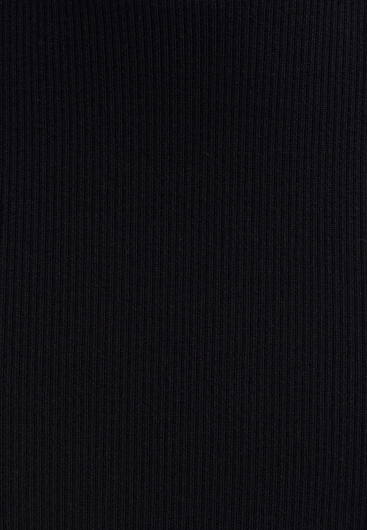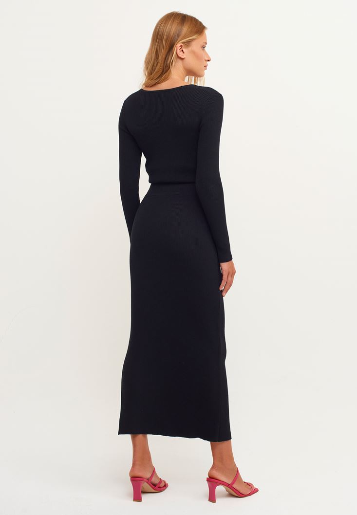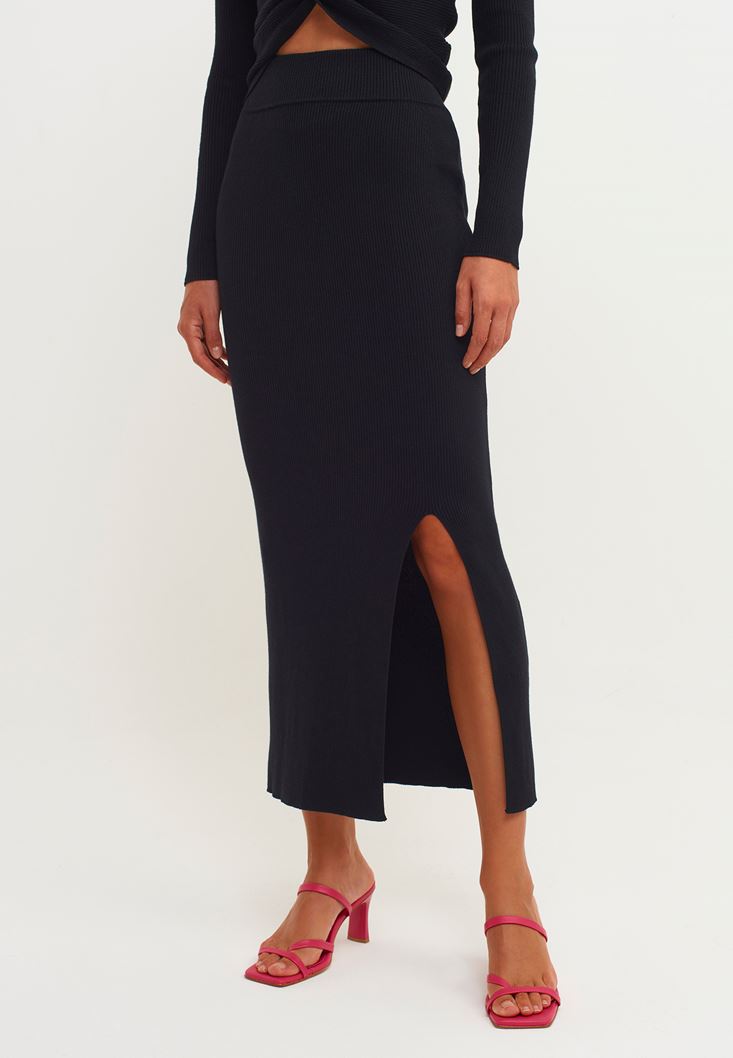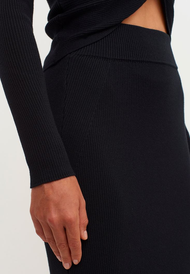 Siyah Yırtmaçlı Midi Boy Triko Etek