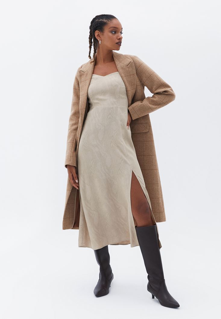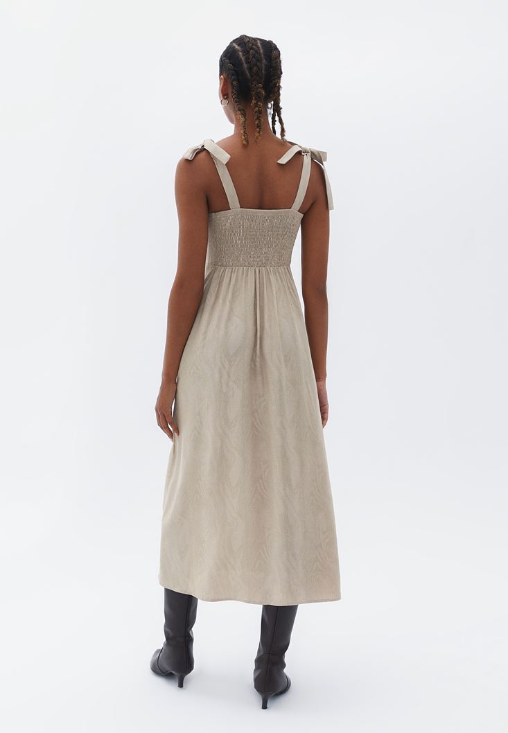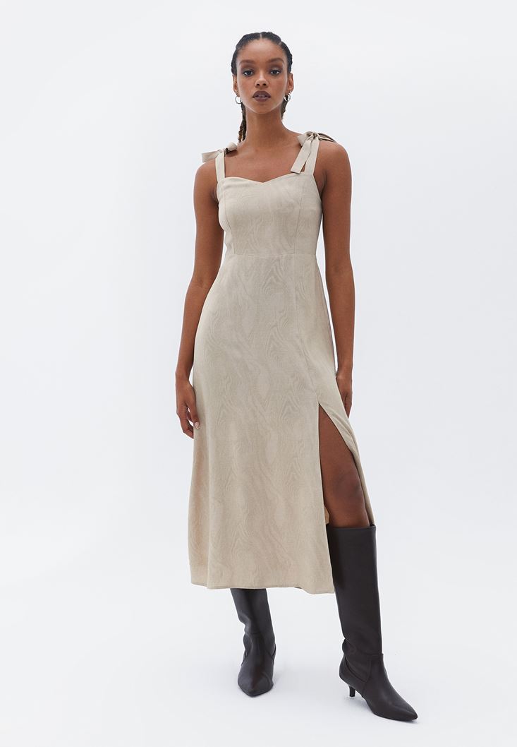 • Bayan Bej Yırtmaçlı Midi Elbise