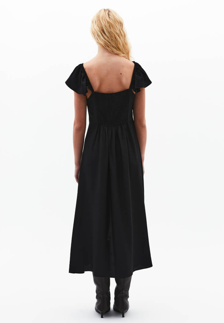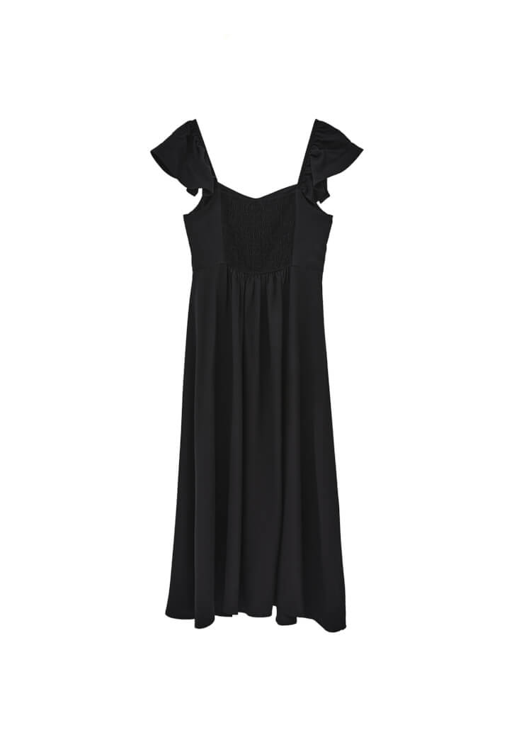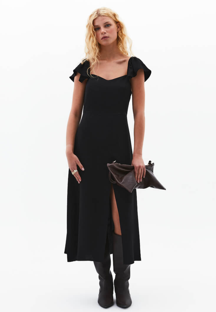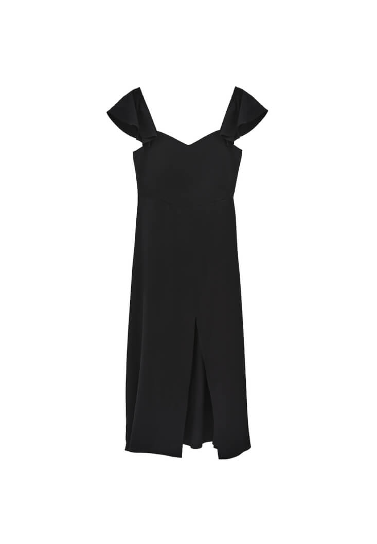 • Bayan Siyah Yırtmaçlı Midi Elbise