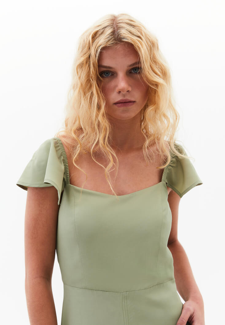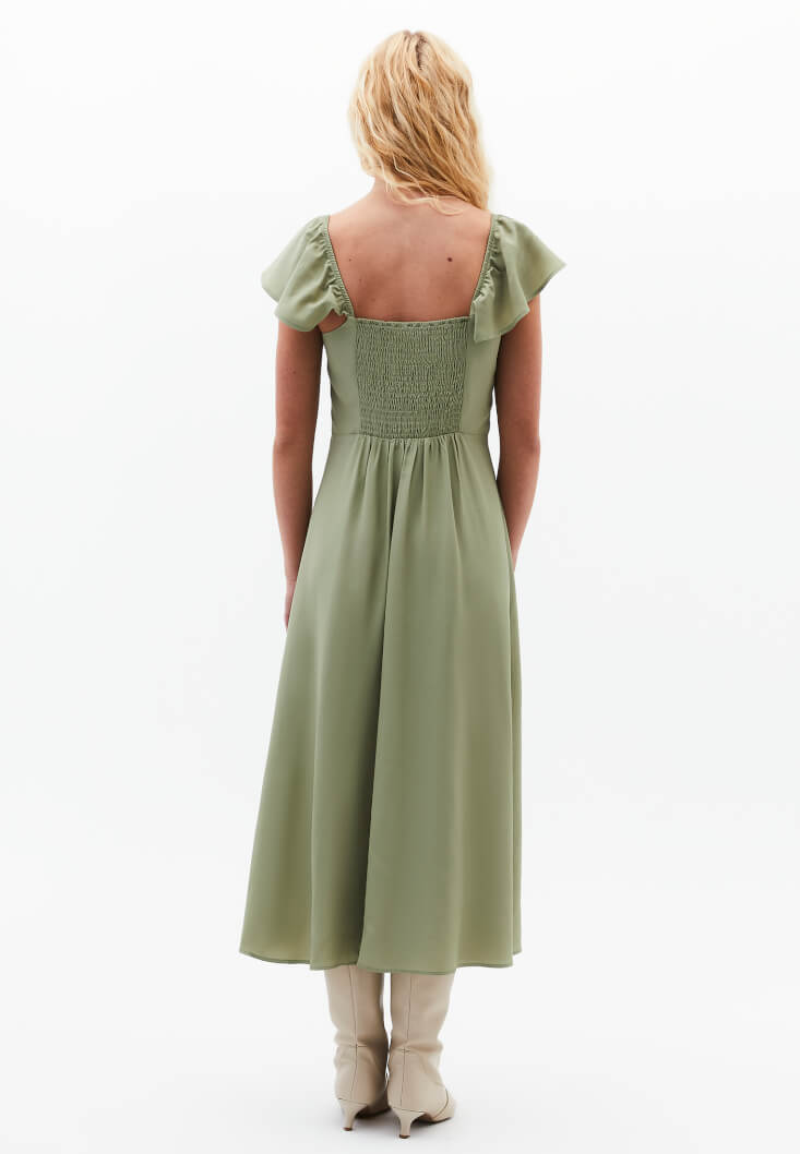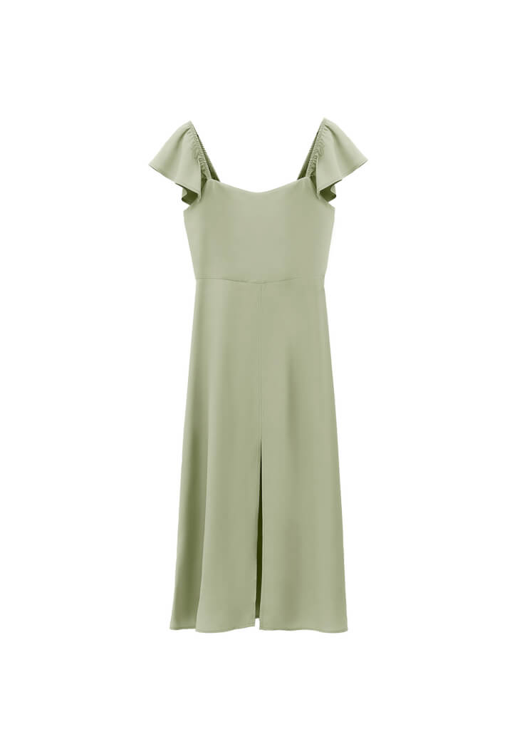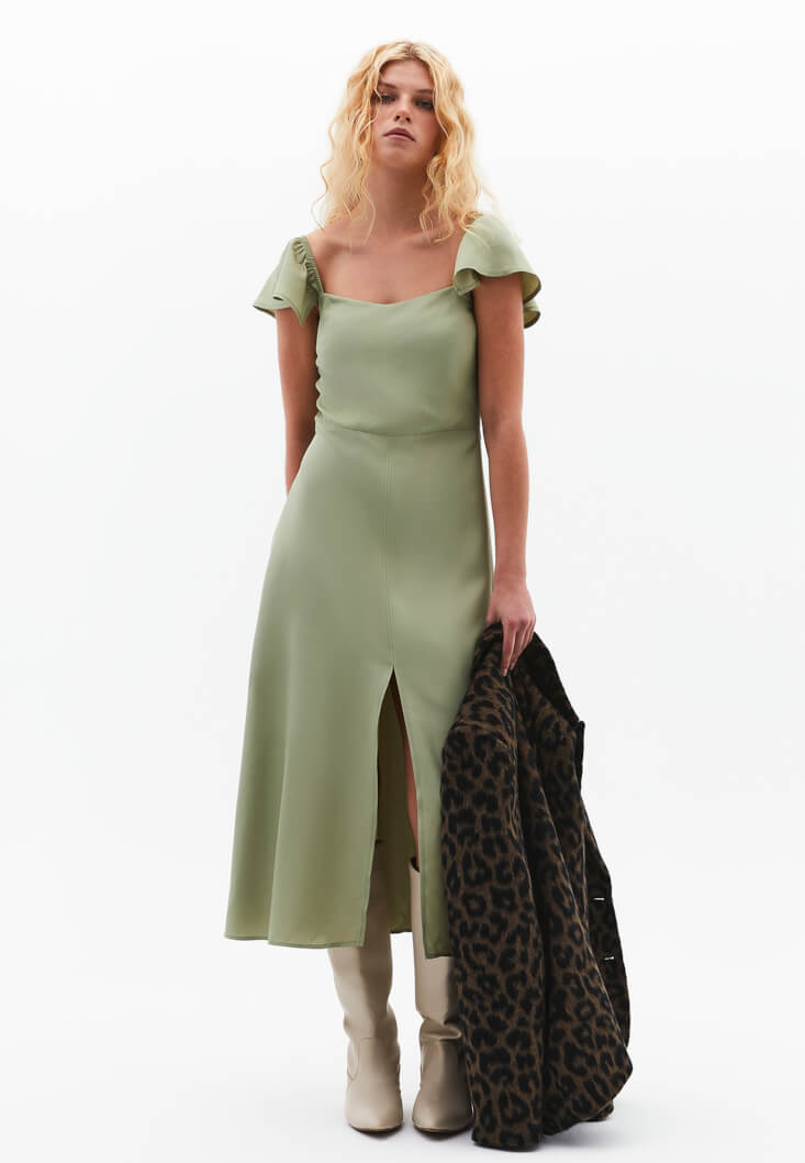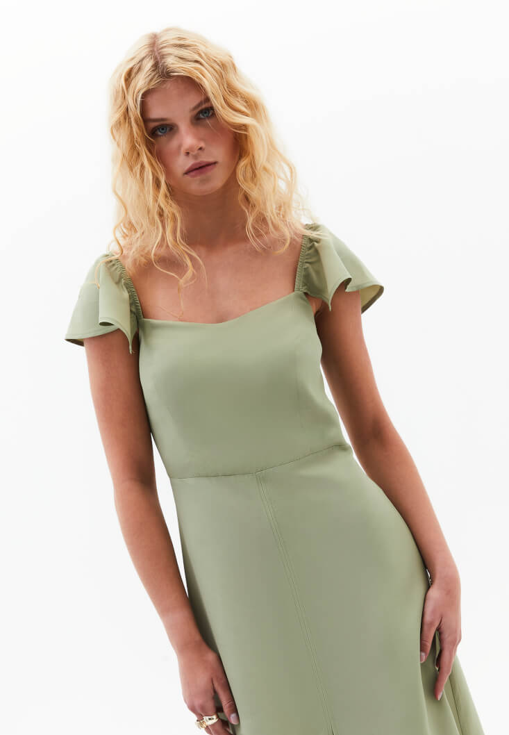 • Bayan Yeşil Yırtmaçlı Midi Elbise