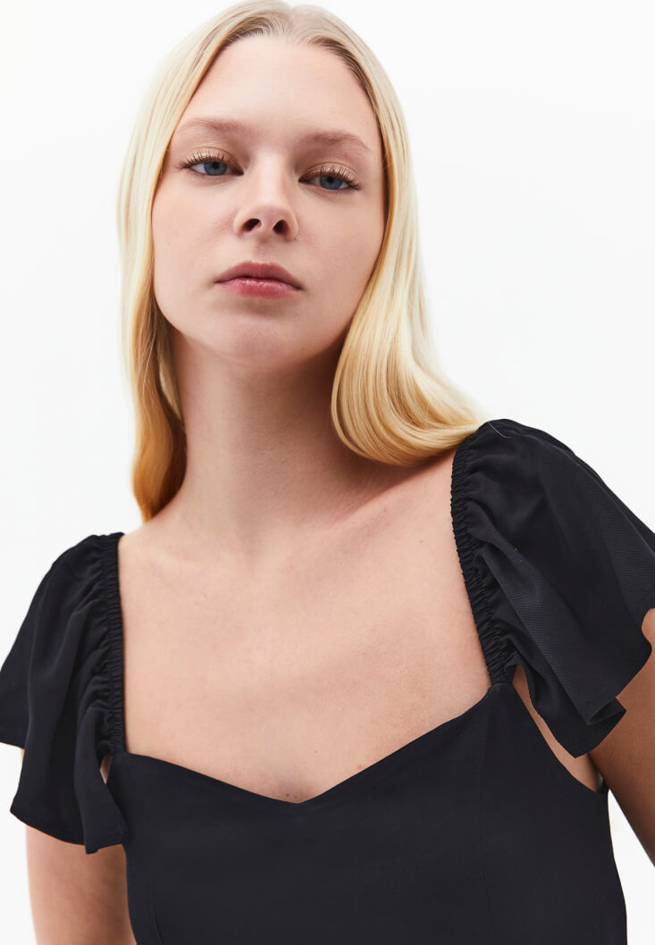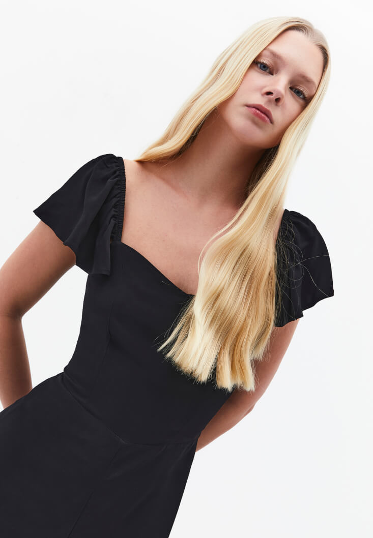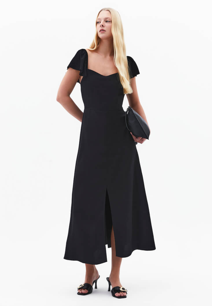 • Bayan Siyah Yırtmaçlı Midi Elbise