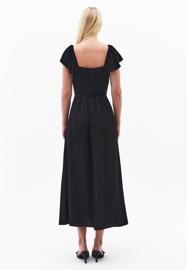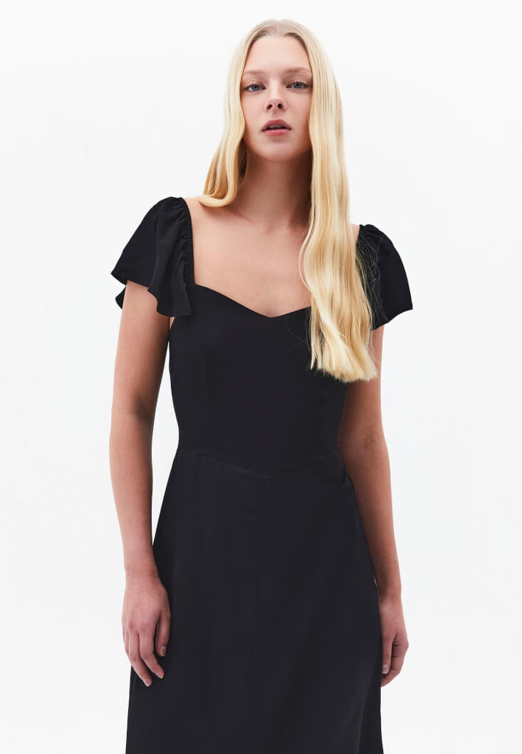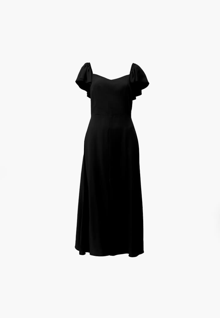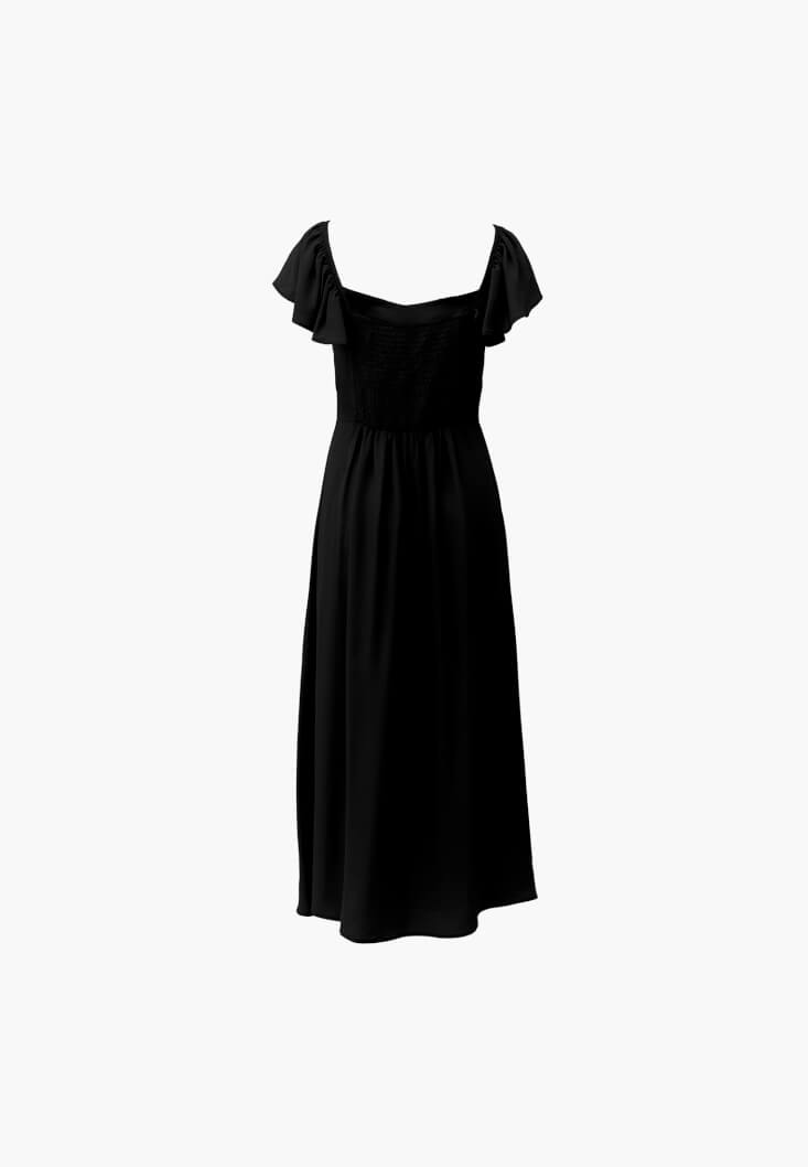Siyah Yırtmaçlı Midi Elbise
