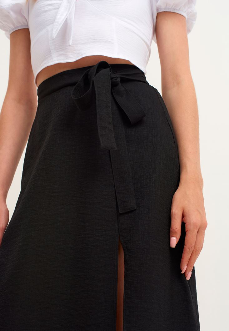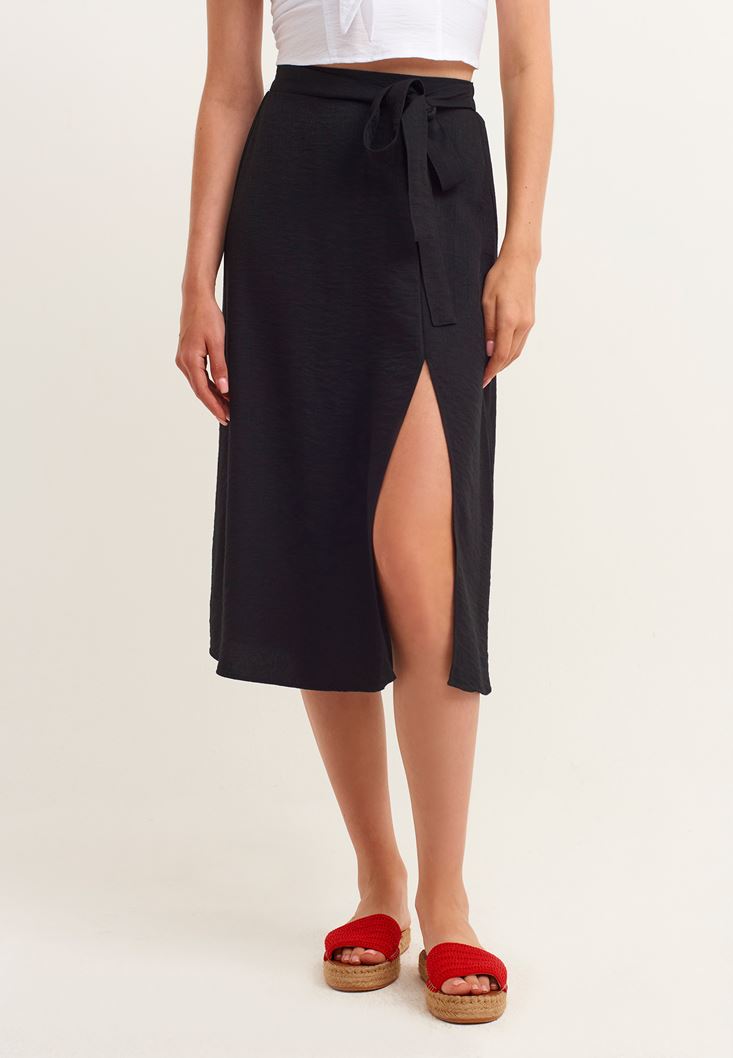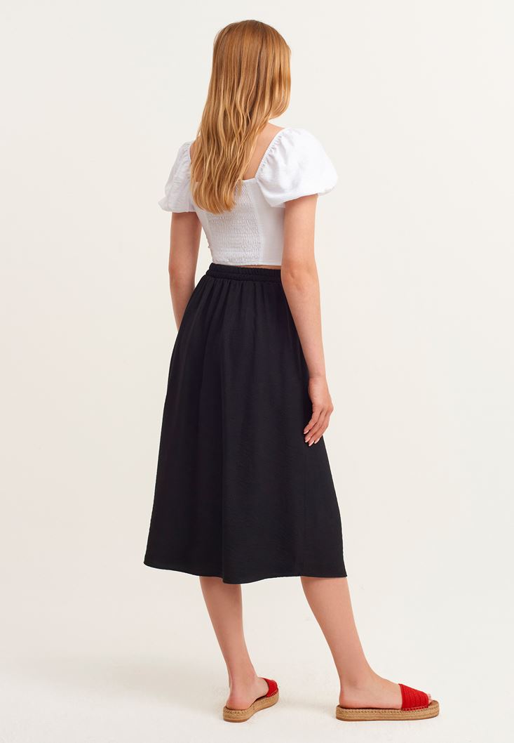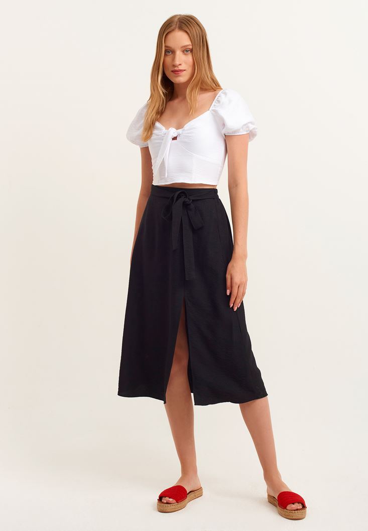 • Bayan Siyah Yırtmaçlı Midi Etek