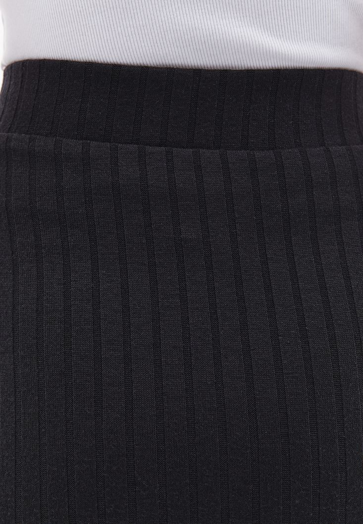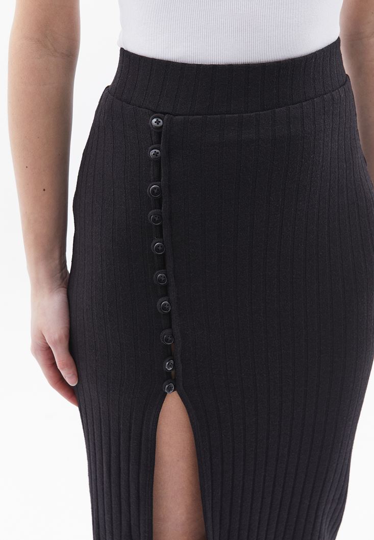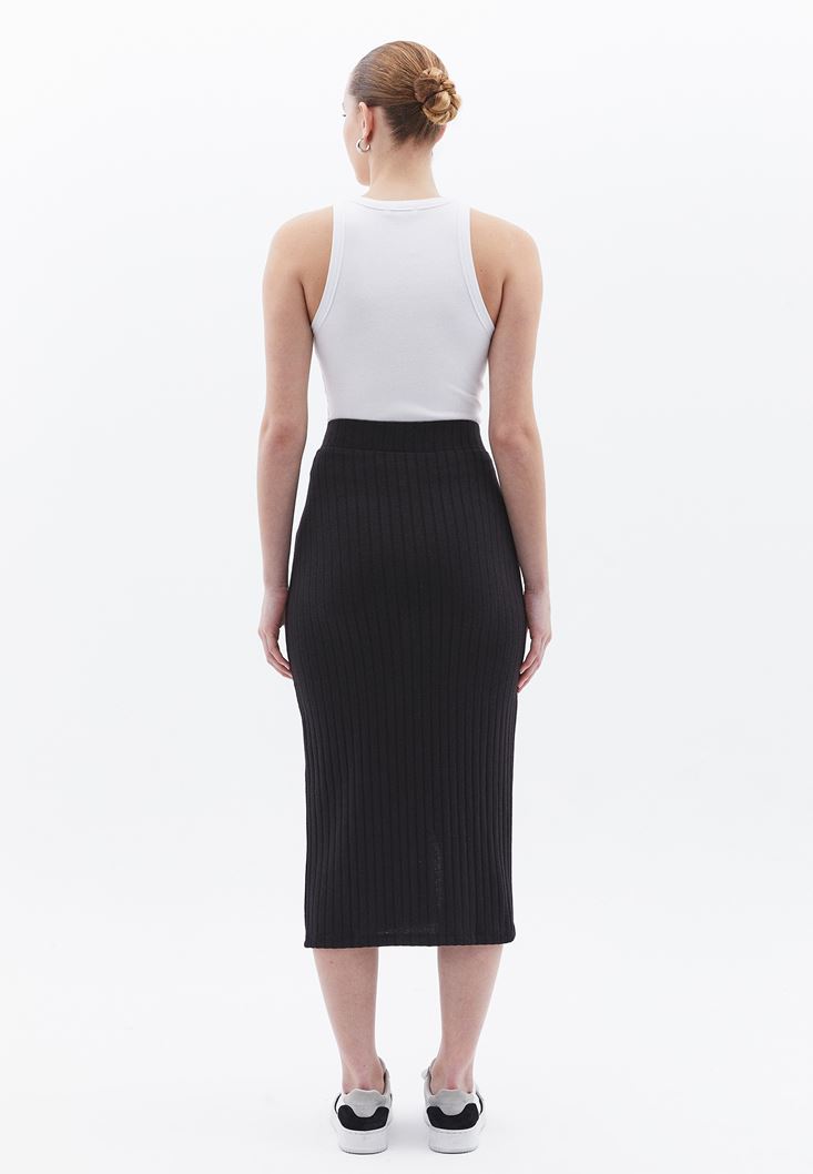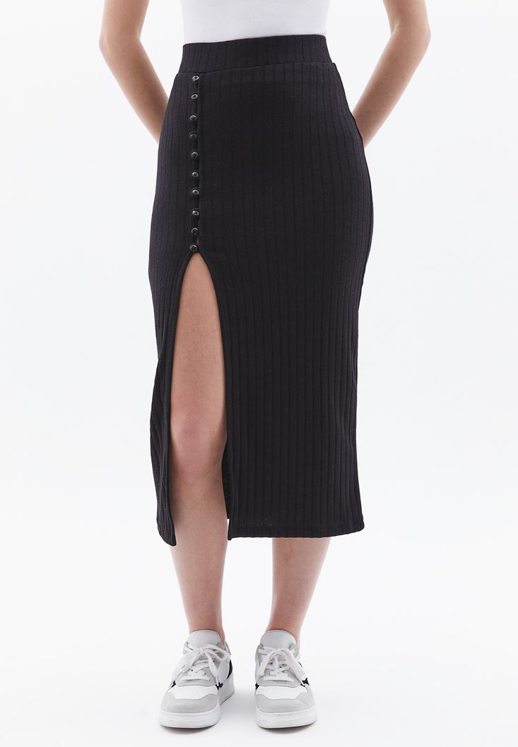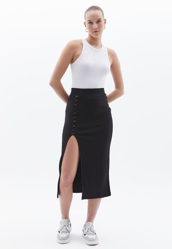 Siyah Yırtmaçlı Midi Etek
